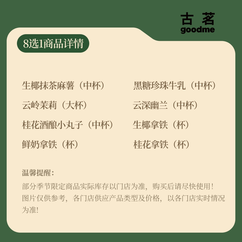 📚 古茗 人气奶茶咖啡 8选1 团购优惠券 全国通用 小程序到店自提