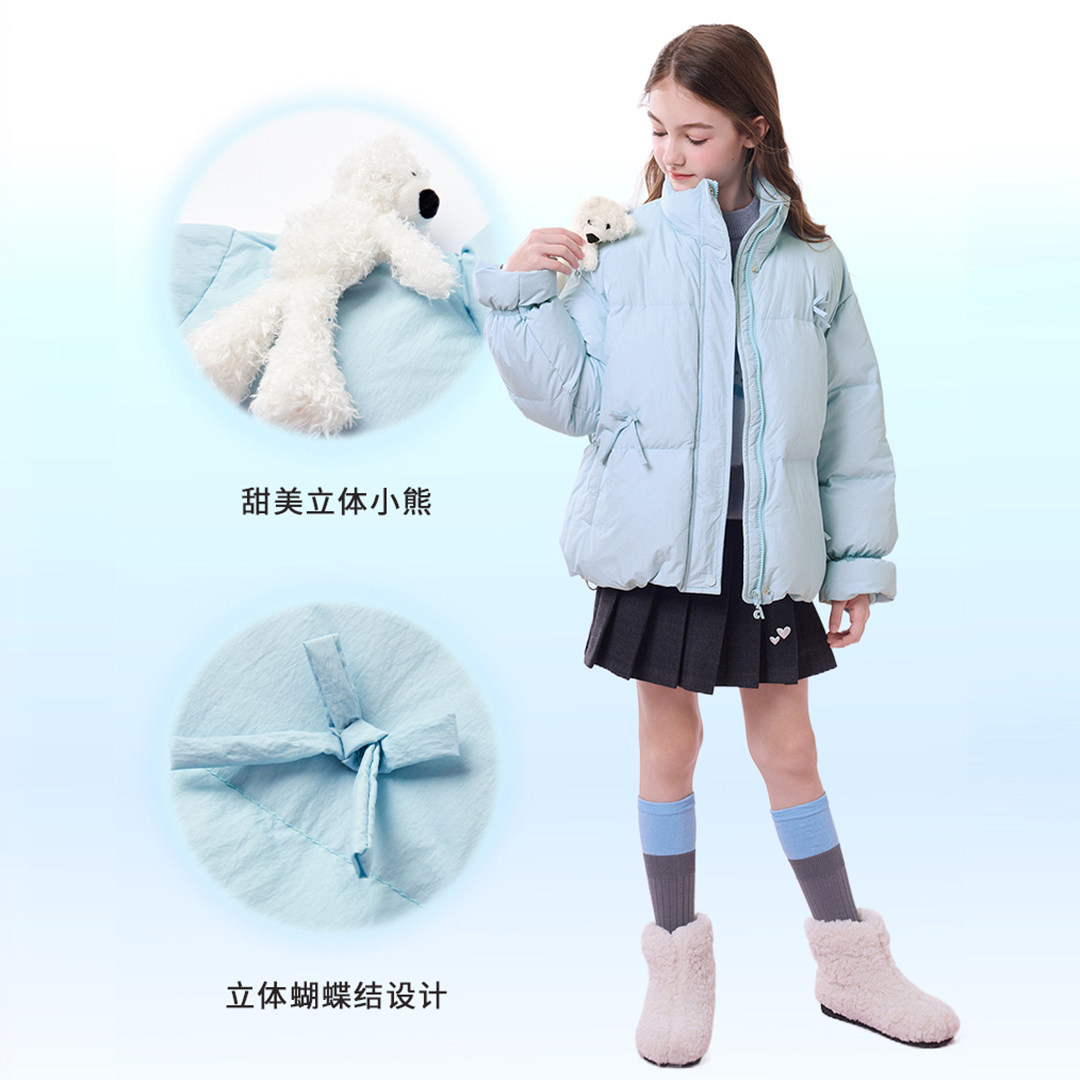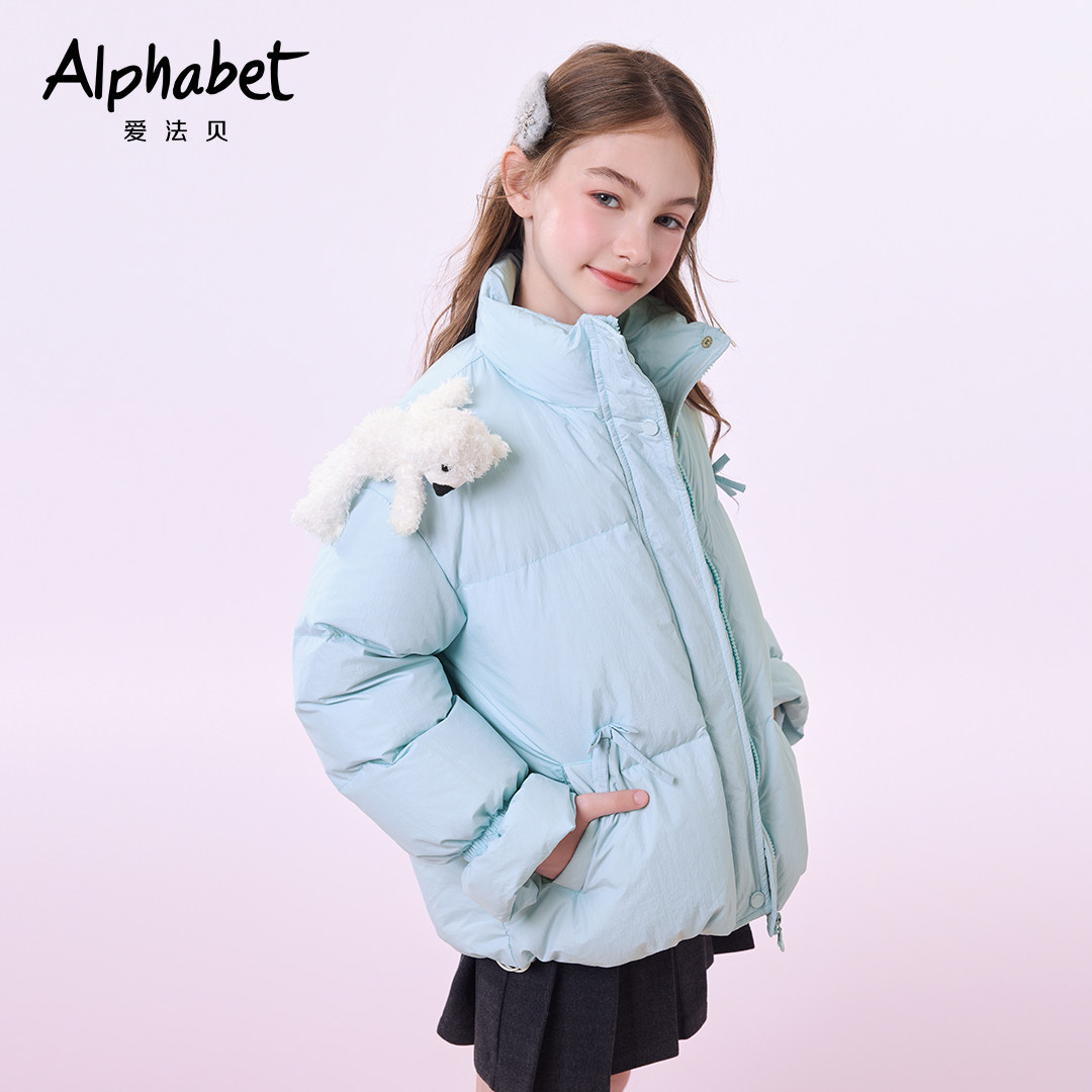 📚 【95绒】爱法贝秋冬新款女童立体玩偶羽绒服儿童潮流羽绒外套