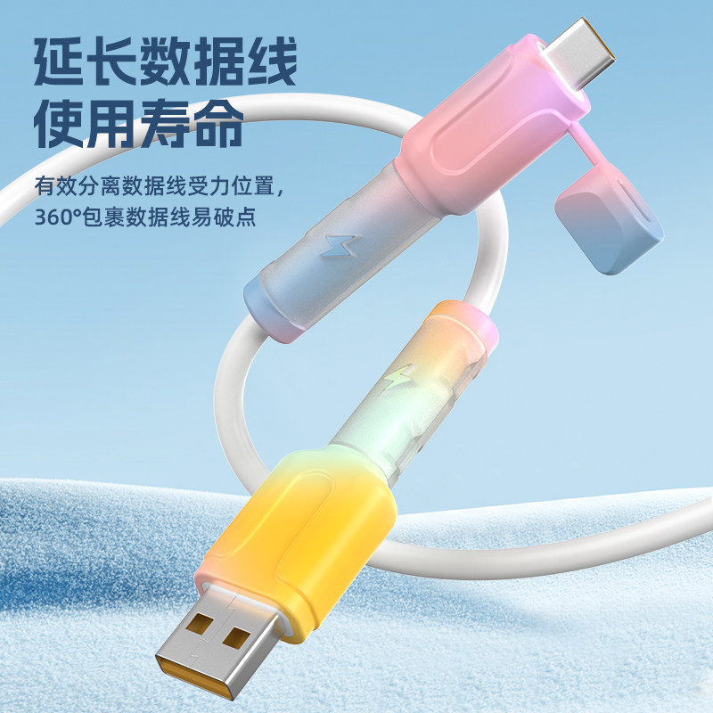 📚 2026雅仔新款升级闪电数据线的保护套硅胶绕线器适用于苹果华为vivo充电线两端接头保护壳防折断带防尘盖通用