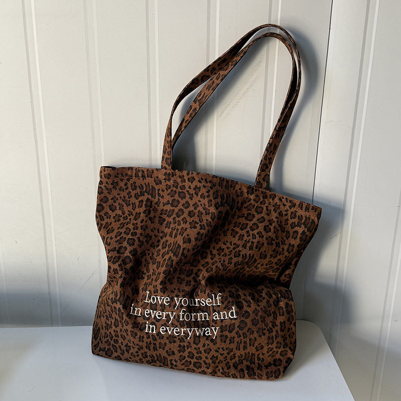 📚 豹纹百搭休闲帆布包手拎单肩斜挎包小众原创日韩ins托特包学院风