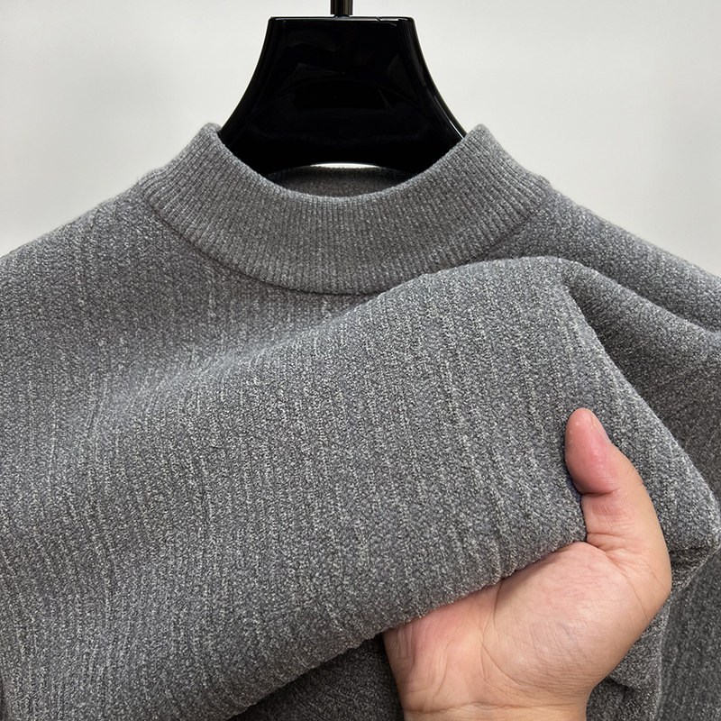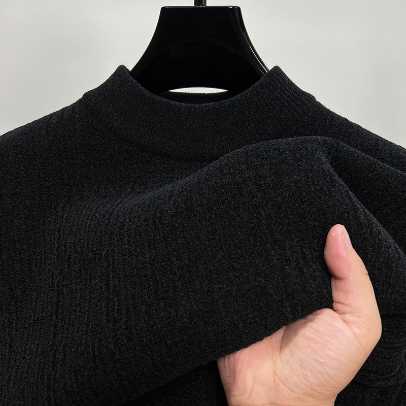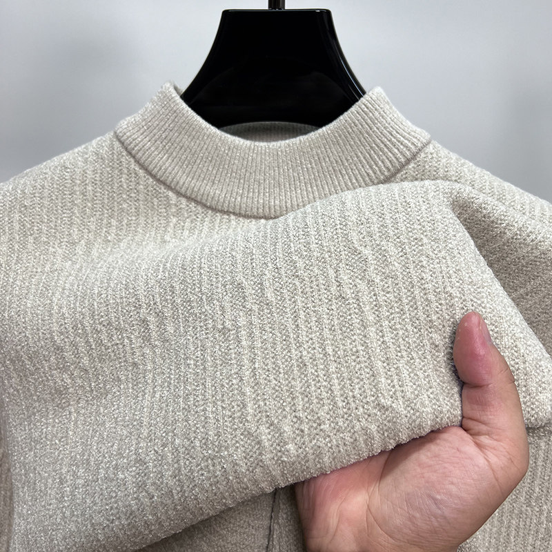📚 一体绒白色半高领毛衣男秋冬季加绒加厚打底衫男修身保暖针织线衣