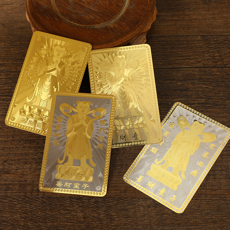 📚 善财洞善财童子金卡银卡求财护身佛卡本命年财神招好运摆件金属卡