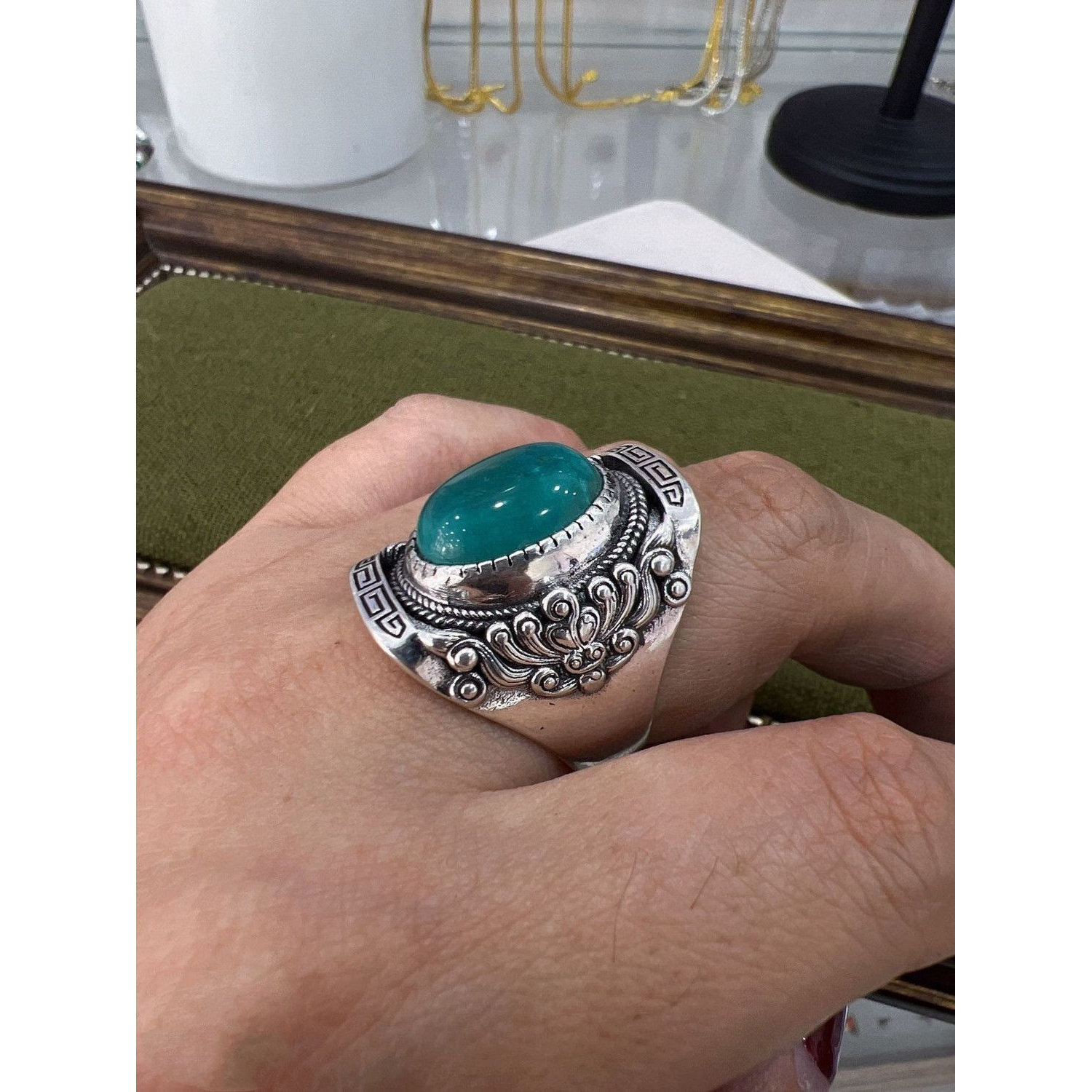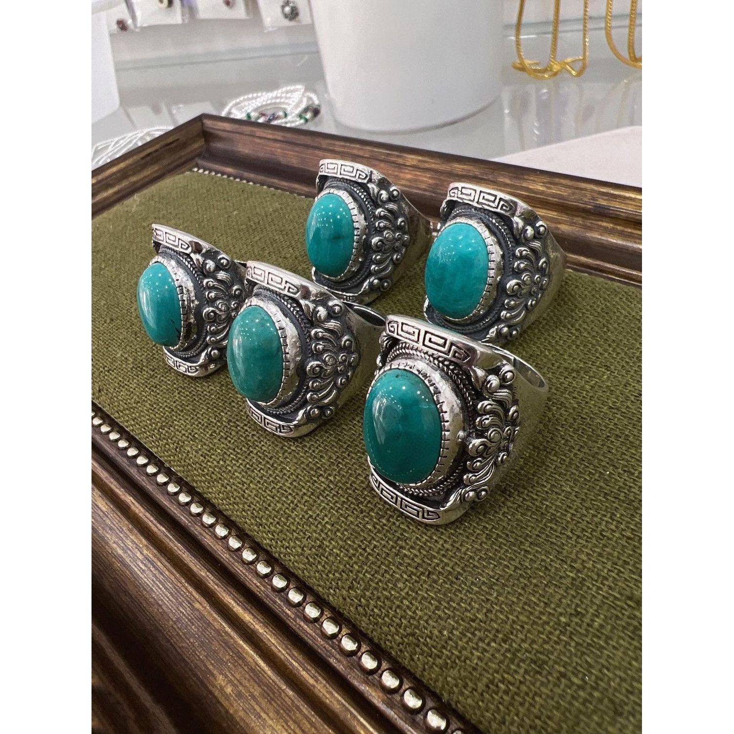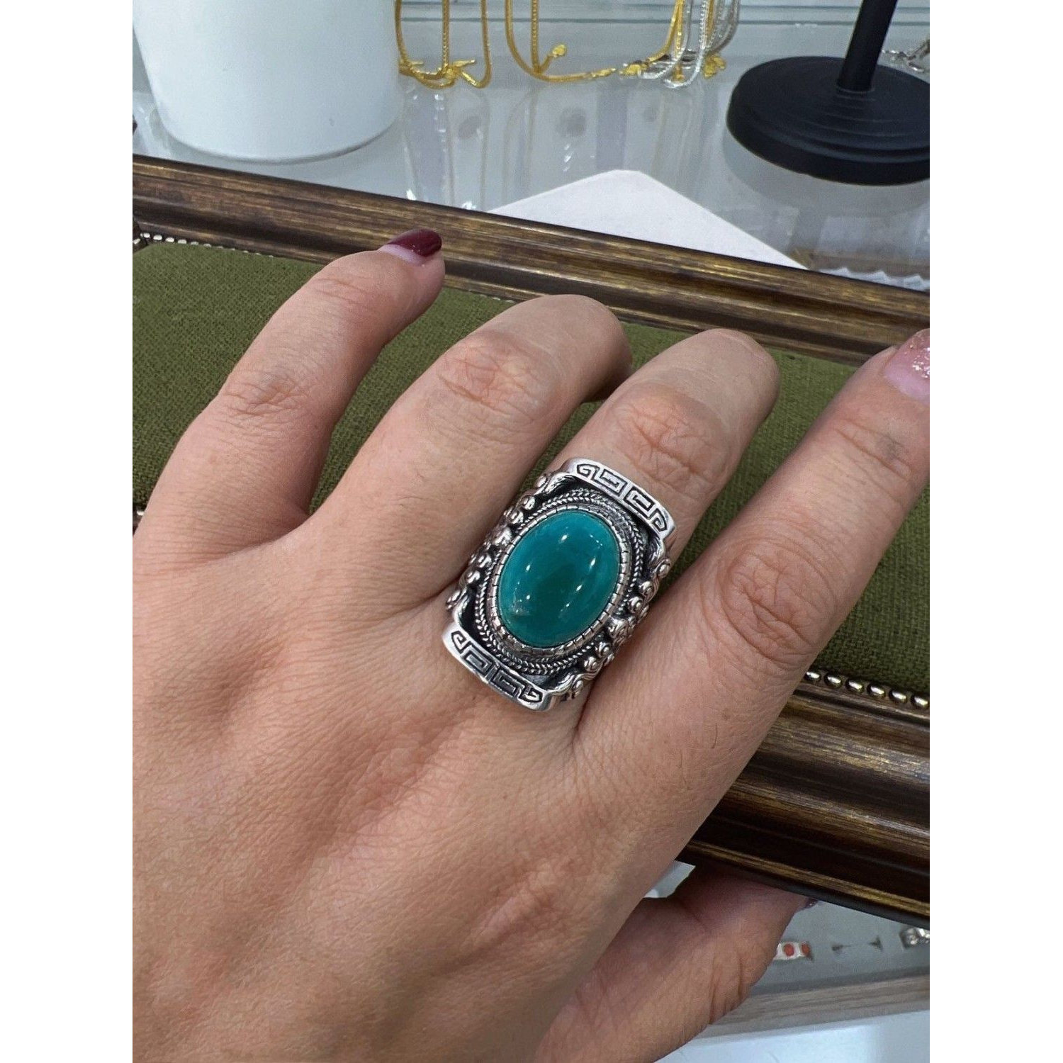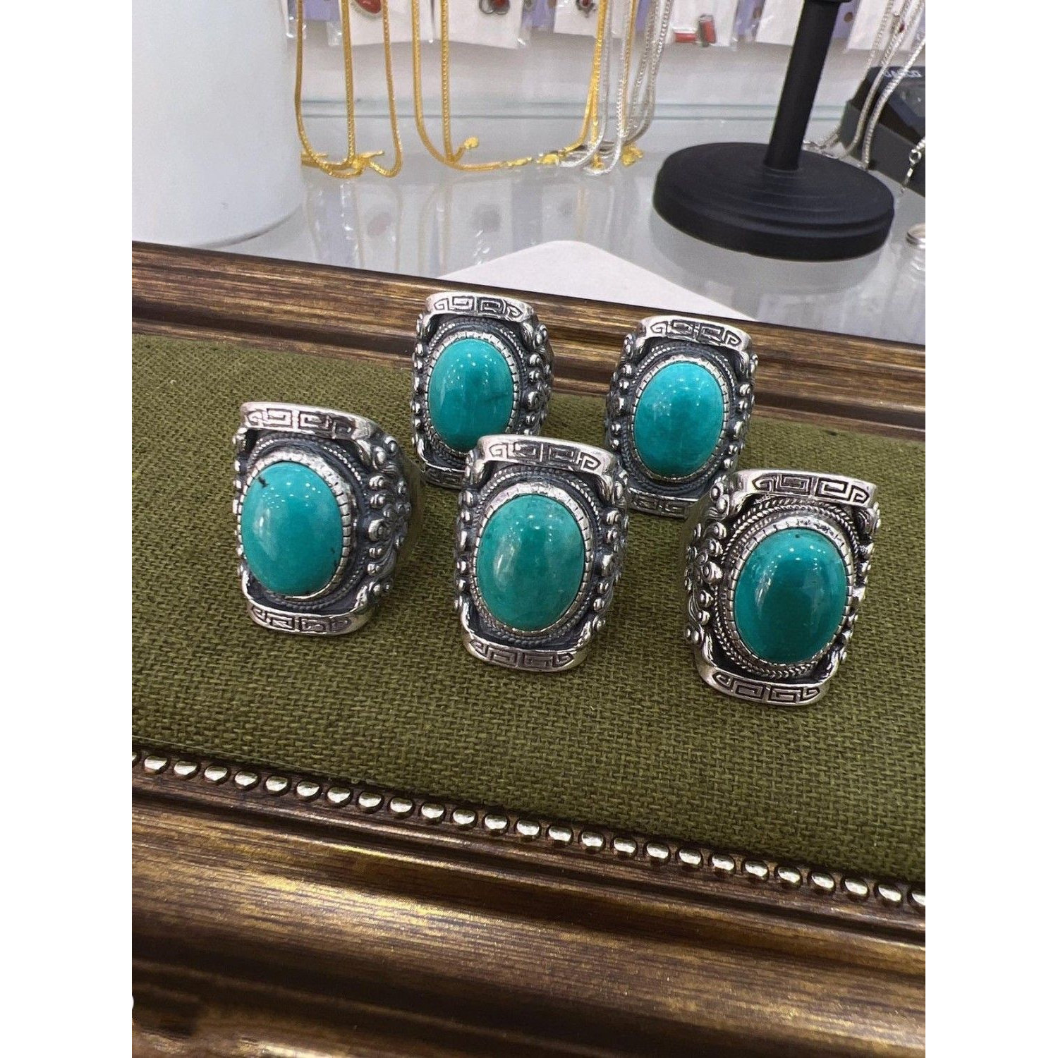 📚 款高颜值蒙古元素戒指椭圆手工镶嵌复古马鞍回形纹莲花边