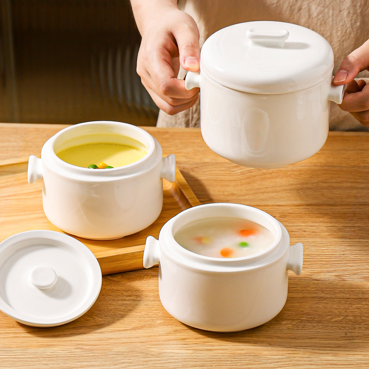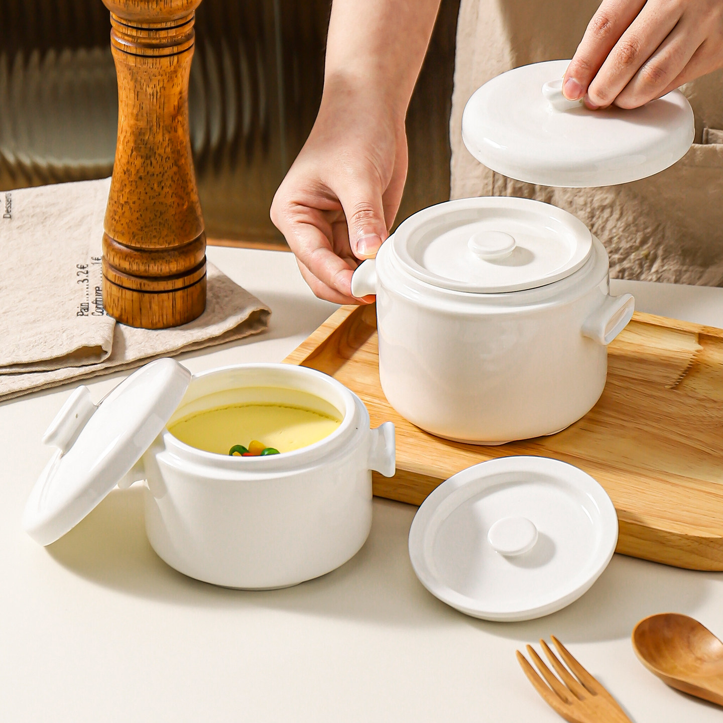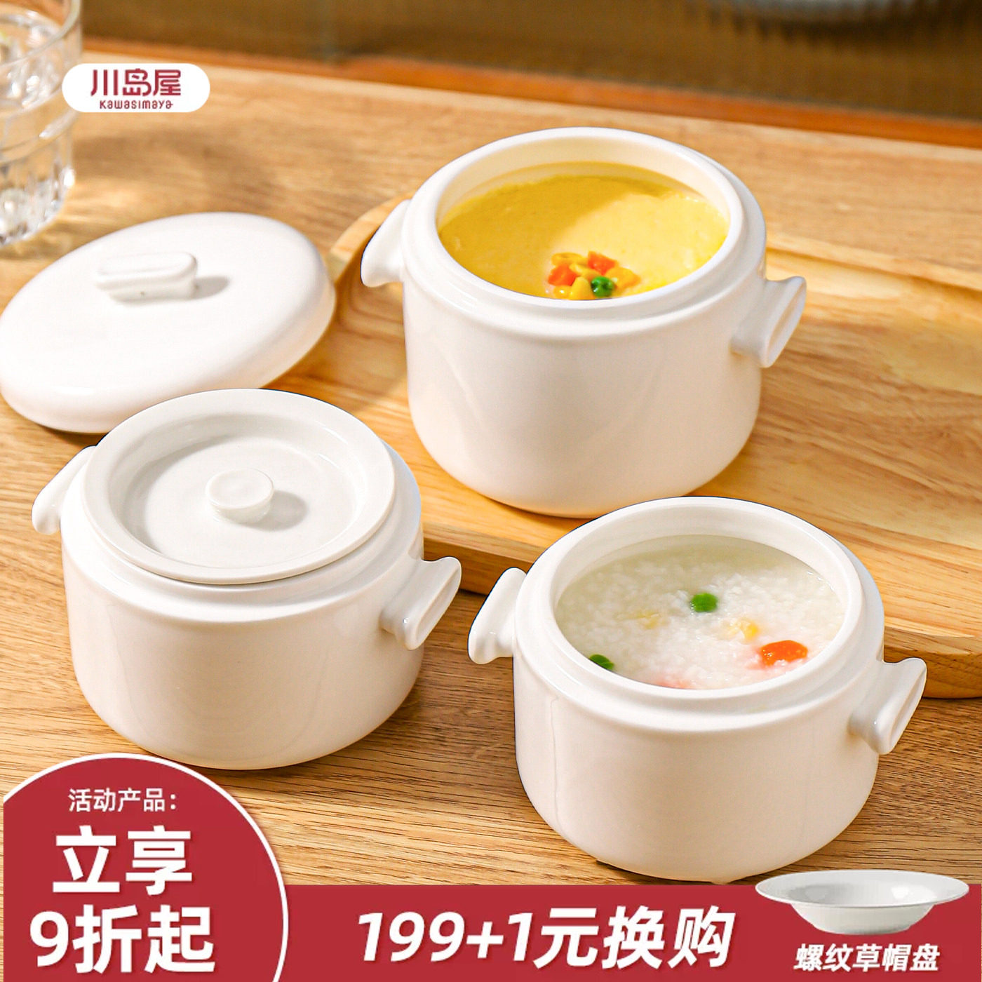 📚 川岛屋炖盅隔水炖家用陶瓷带盖一人份小瓦罐汤盅蒸盅蒸蛋羹专用碗