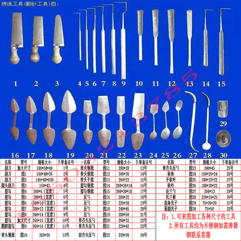📚 铸造工具不锈钢翻砂造型工具铸造厂用压勺刮刀竹梗提勾钢批秋叶