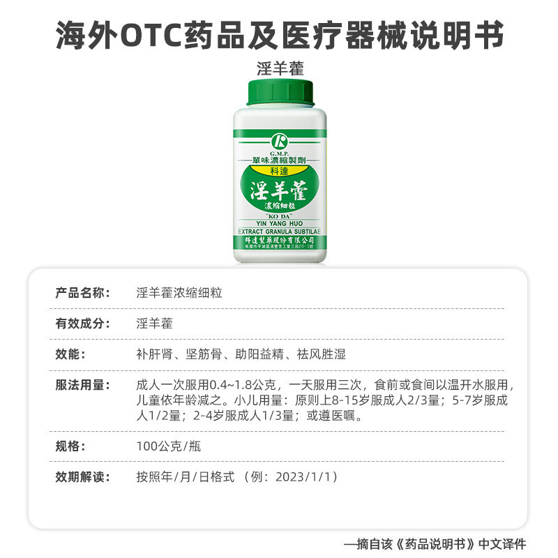 📚 科达制药淫羊藿浓缩细粒100g中国台湾免煎中药饮片颗粒官方正品