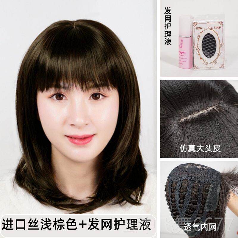 📚 正品化疗女士假后发长发自然色全头款中年妈妈中长黑假发套光头假
