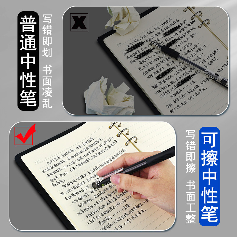 📚 晨光热可擦笔按动式魔力可檫中性笔黑小学生专用水笔三四年级用的笔水性可以擦掉复写蓝圆珠笔芯可擦写晶蓝色