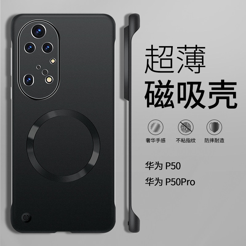 📚 适用华为p50pro手机壳p50e的新款磁吸无边框2024超薄半包散热不顶膜网红女曲面屏专用高级感小众男士硬壳外壳