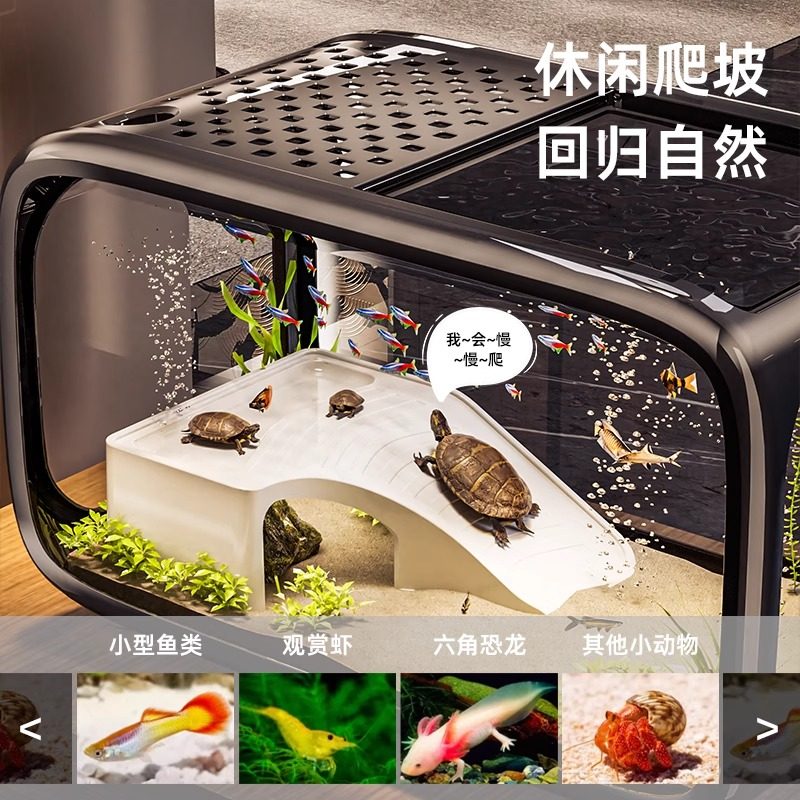 📚 鱼缸过滤制氧一体机小型客厅2025新款桌面生态缸造景摆件金鱼缸用