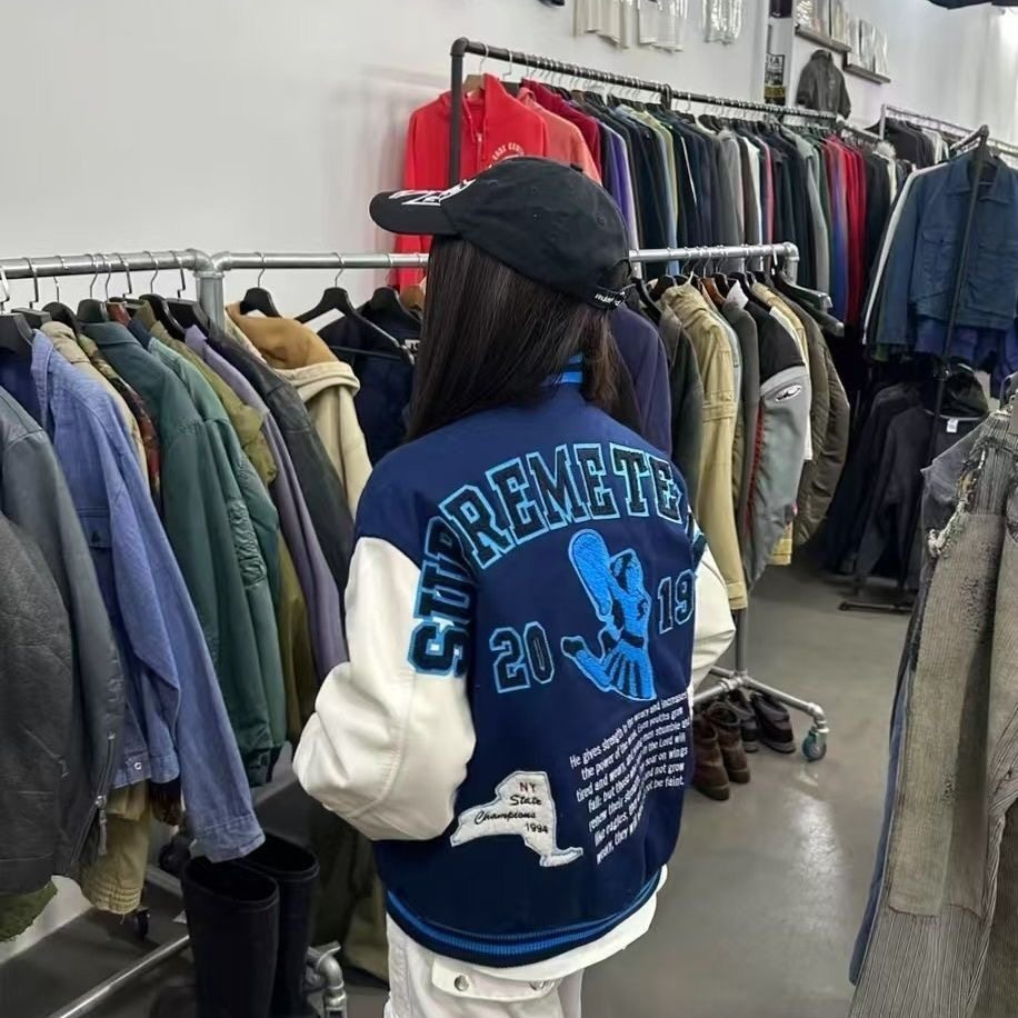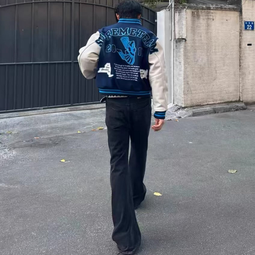 📚 美式高街vibe复古棒球服拼接外套男女宽松休闲百搭夹克上衣秋冬新