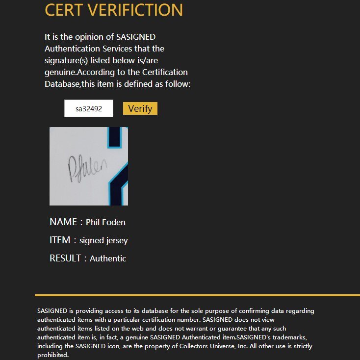 📚 福登 2022世界杯英格兰队 亲笔签名足球服球衣 裱框含SA证书