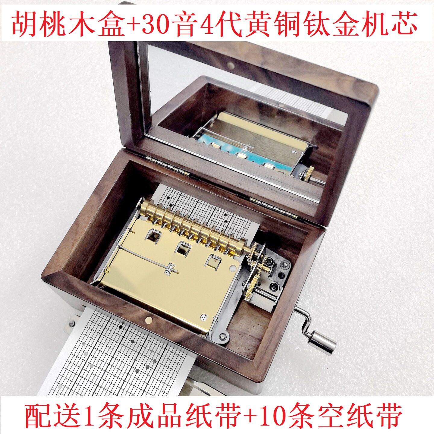 📚 30音手摇纸带八音盒DIY谱曲实木音乐盒机芯定制曲目男女生日礼物