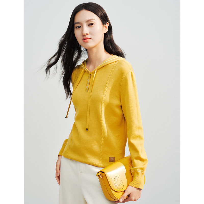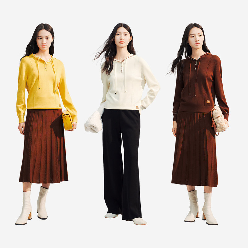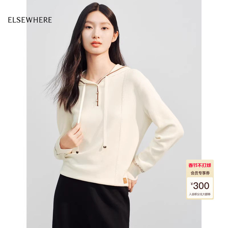 📚 【绵羊毛x桑蚕丝】ELSEWHERE珂思商场同款连帽羊毛衫女秋毛衣
