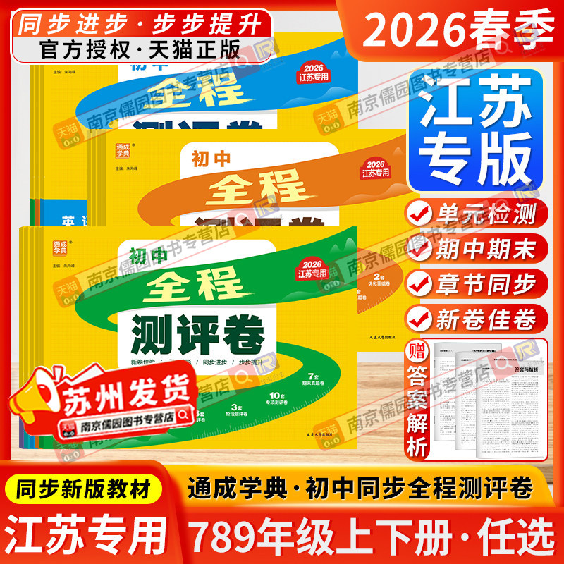 📚 江苏专用2026春全程测评卷初中七八九年级上下册语文数学英语物理化学人教版苏科版译林沪教全一册通成学典期期中期末卷综合测试卷