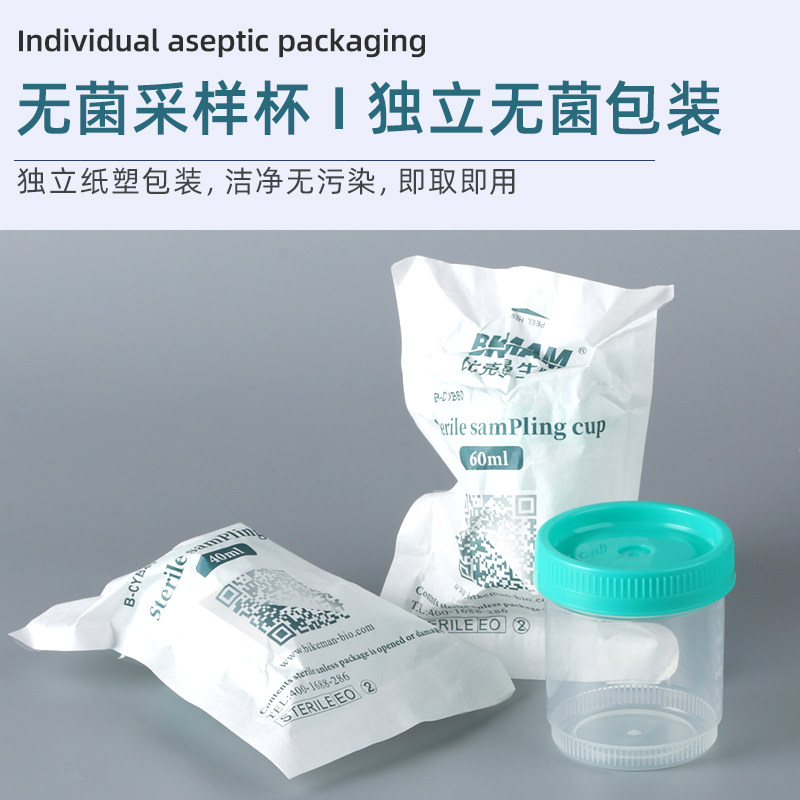📚 比克曼生物无菌采样杯样品检验杯验尿杯接痰杯精子大便杯一次性样品杯采集杯独立无菌包装单个灭菌