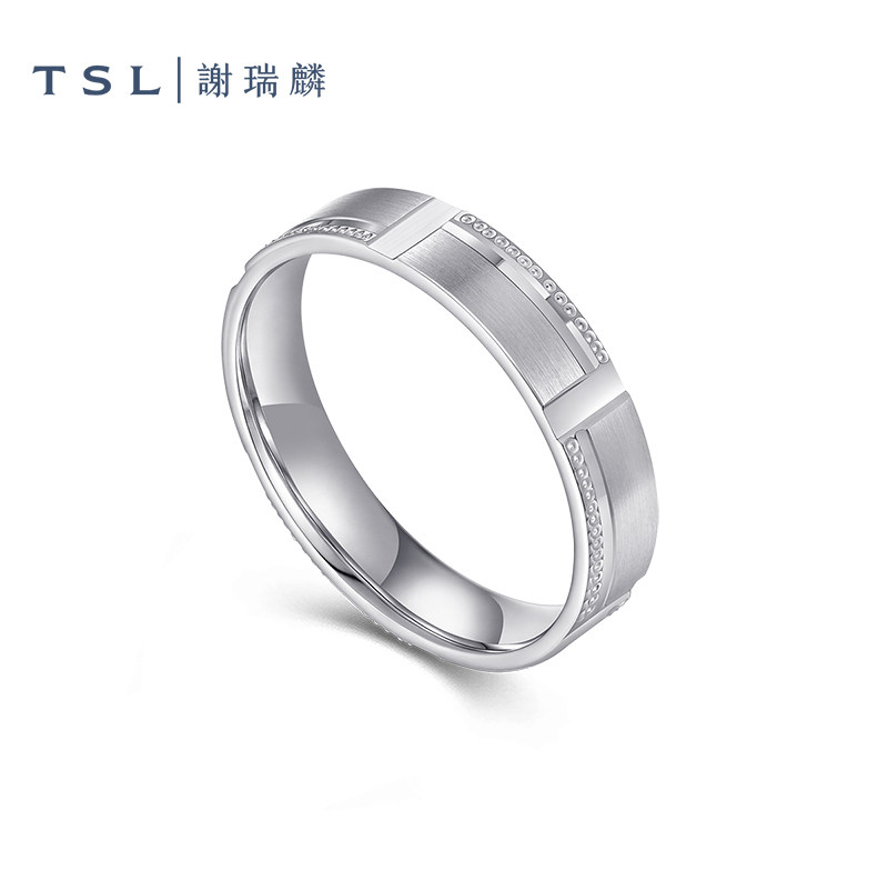 📚 情人节TSL谢瑞麟铂金对戒情侣结婚对戒车花工艺指环男女BF528-BF5
