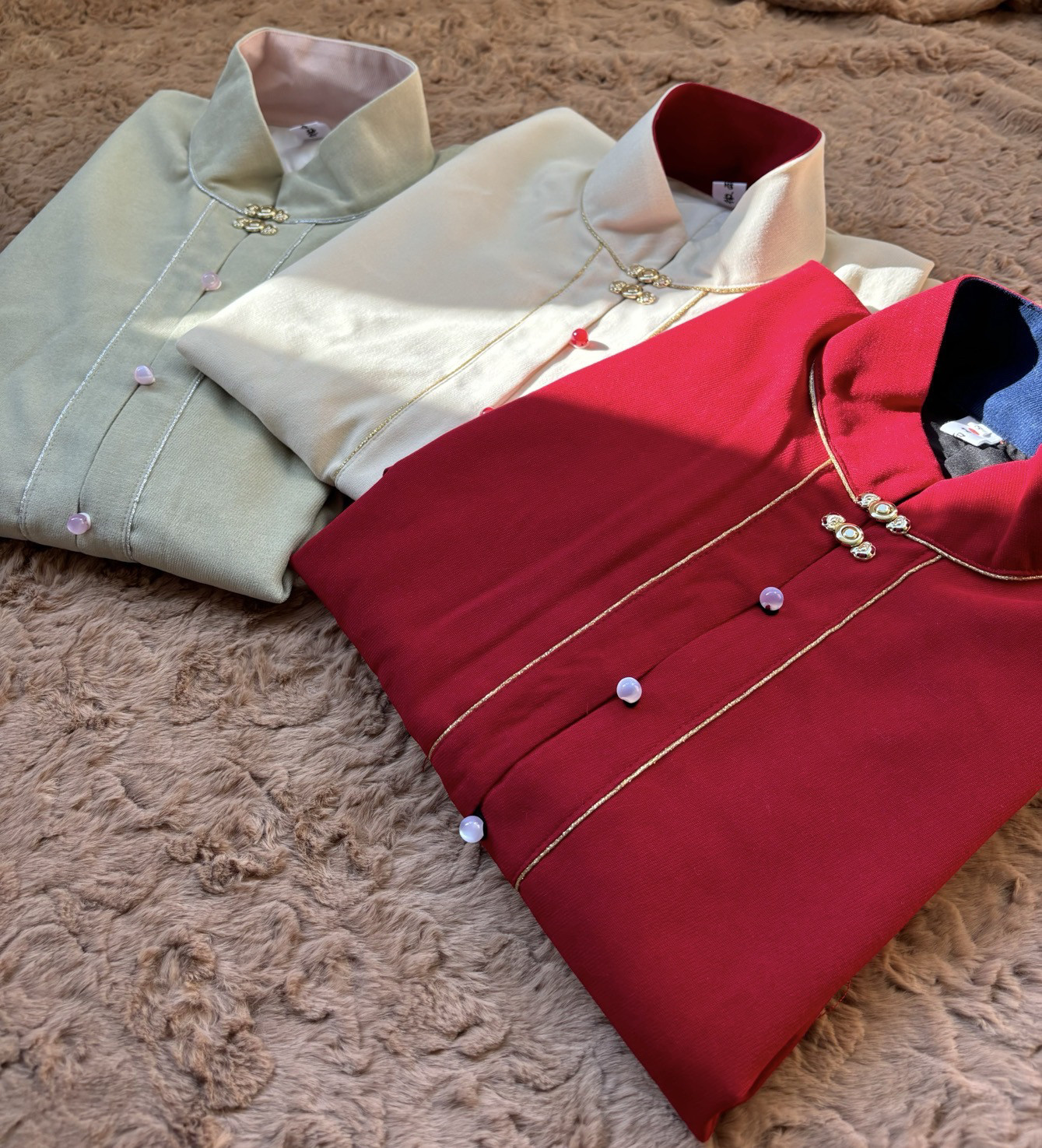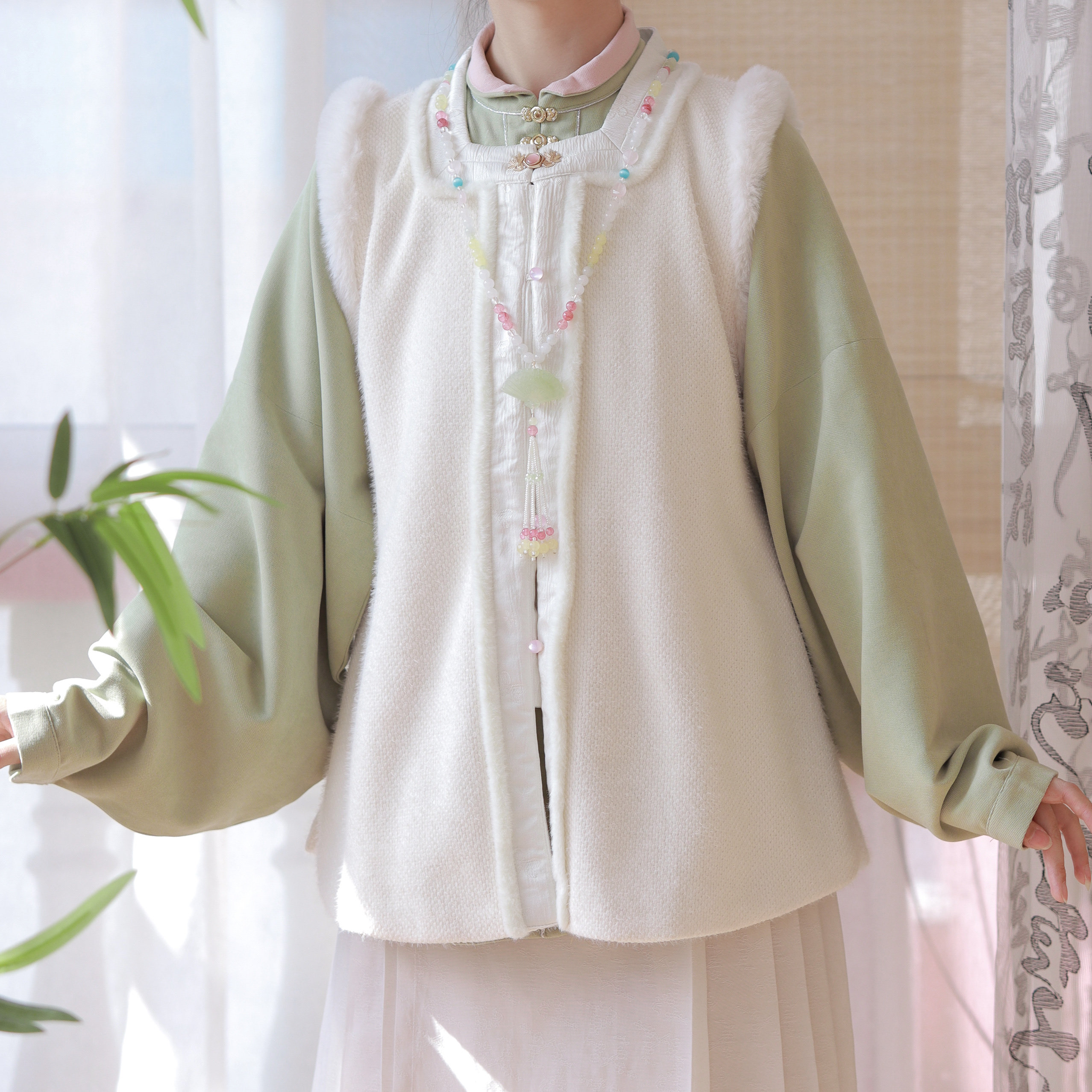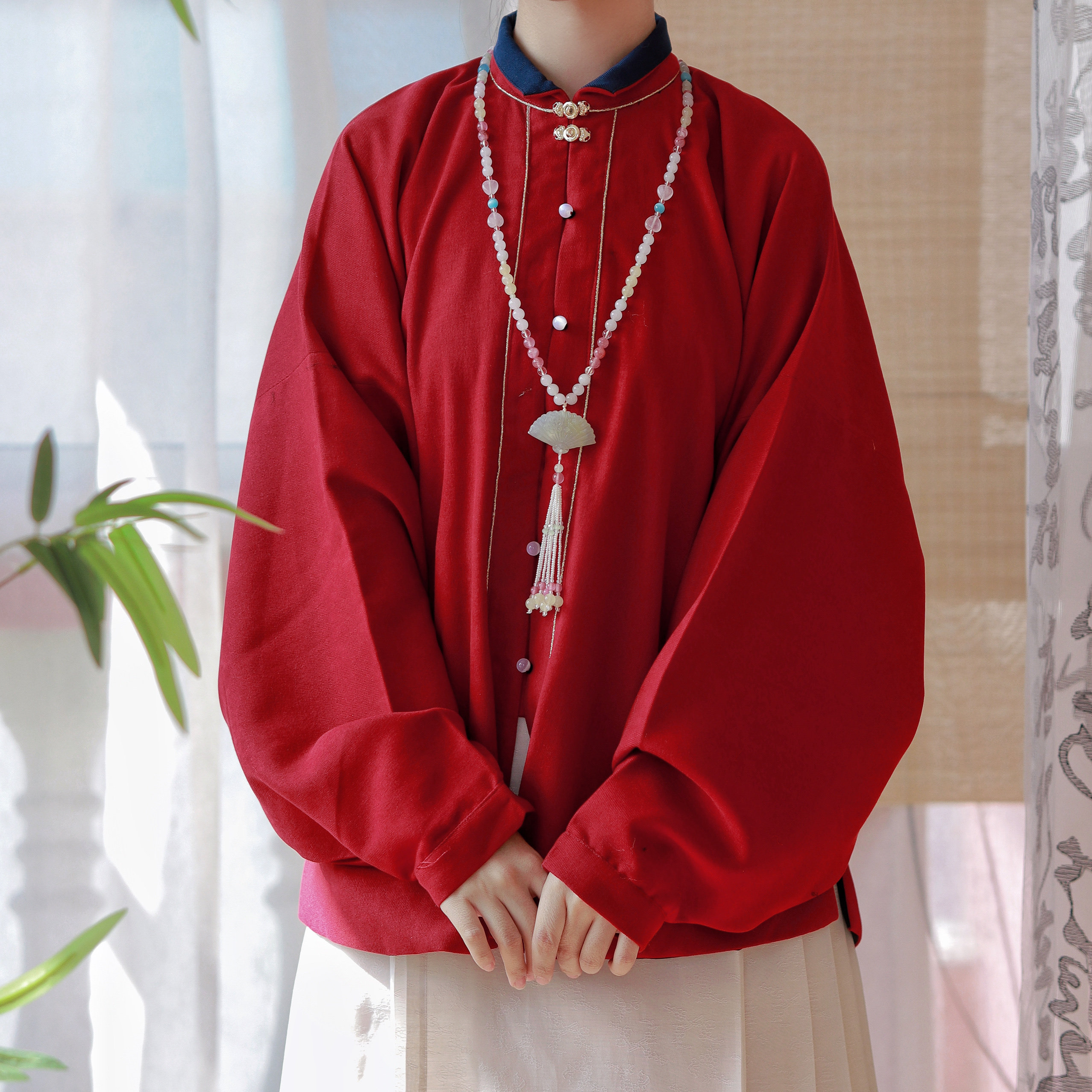 📚 【织冬】微雨亭双层秋冬拼色圈金立领对襟上袄弓袋袖百搭日常汉服