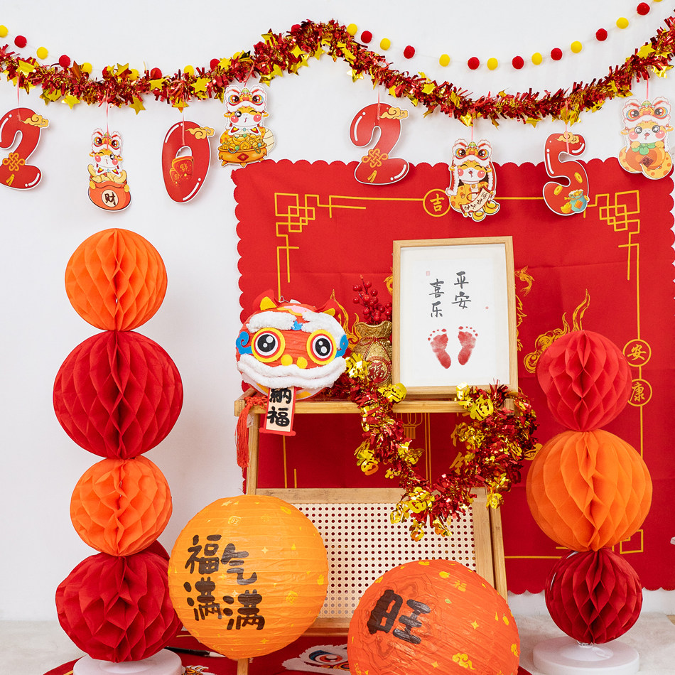 📚 周岁生日布置新中式家庭版生日快乐灯笼福蜂窝球抓周礼拍照道具