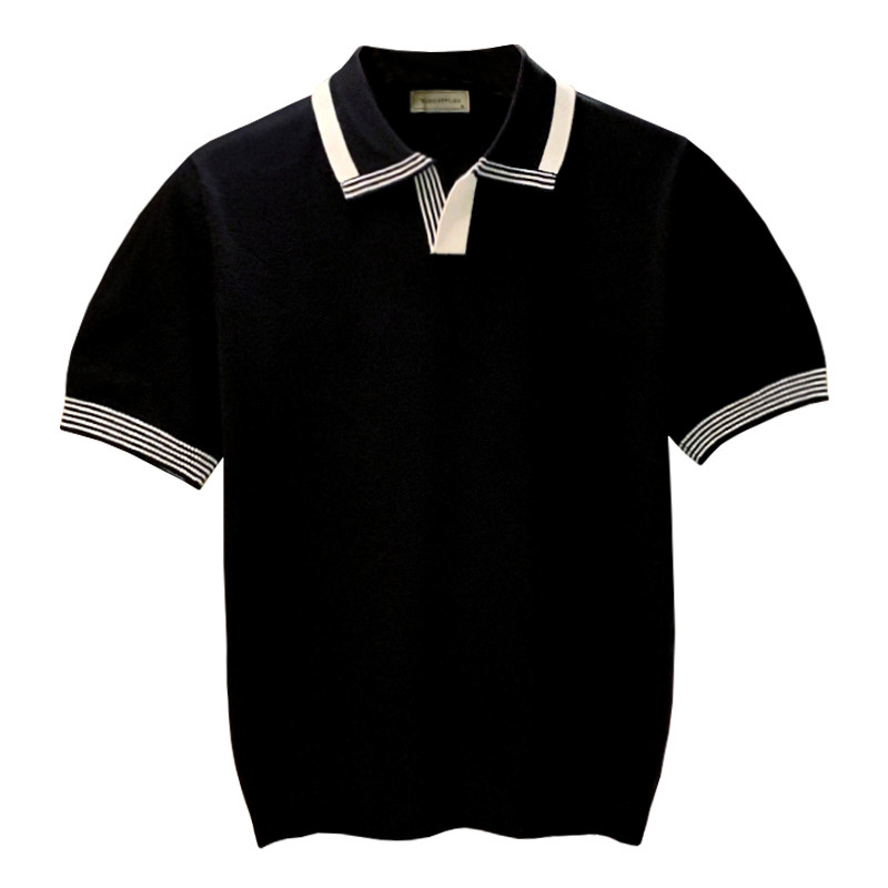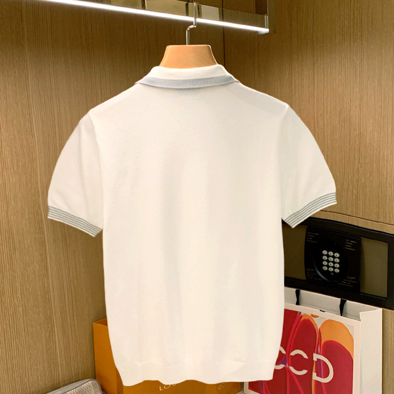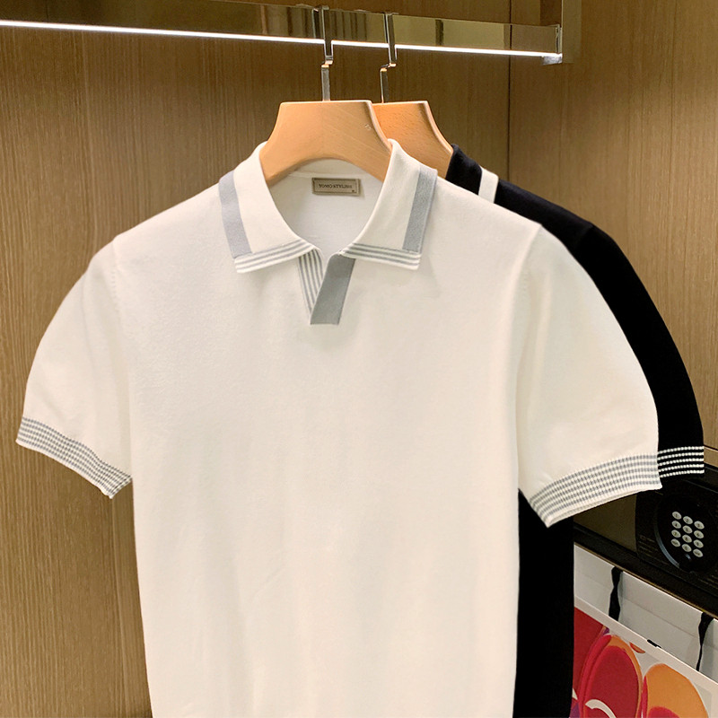 📚 夏季新款修身针织上衣翻领t恤男短袖 英伦高端休闲白色polo衫男款