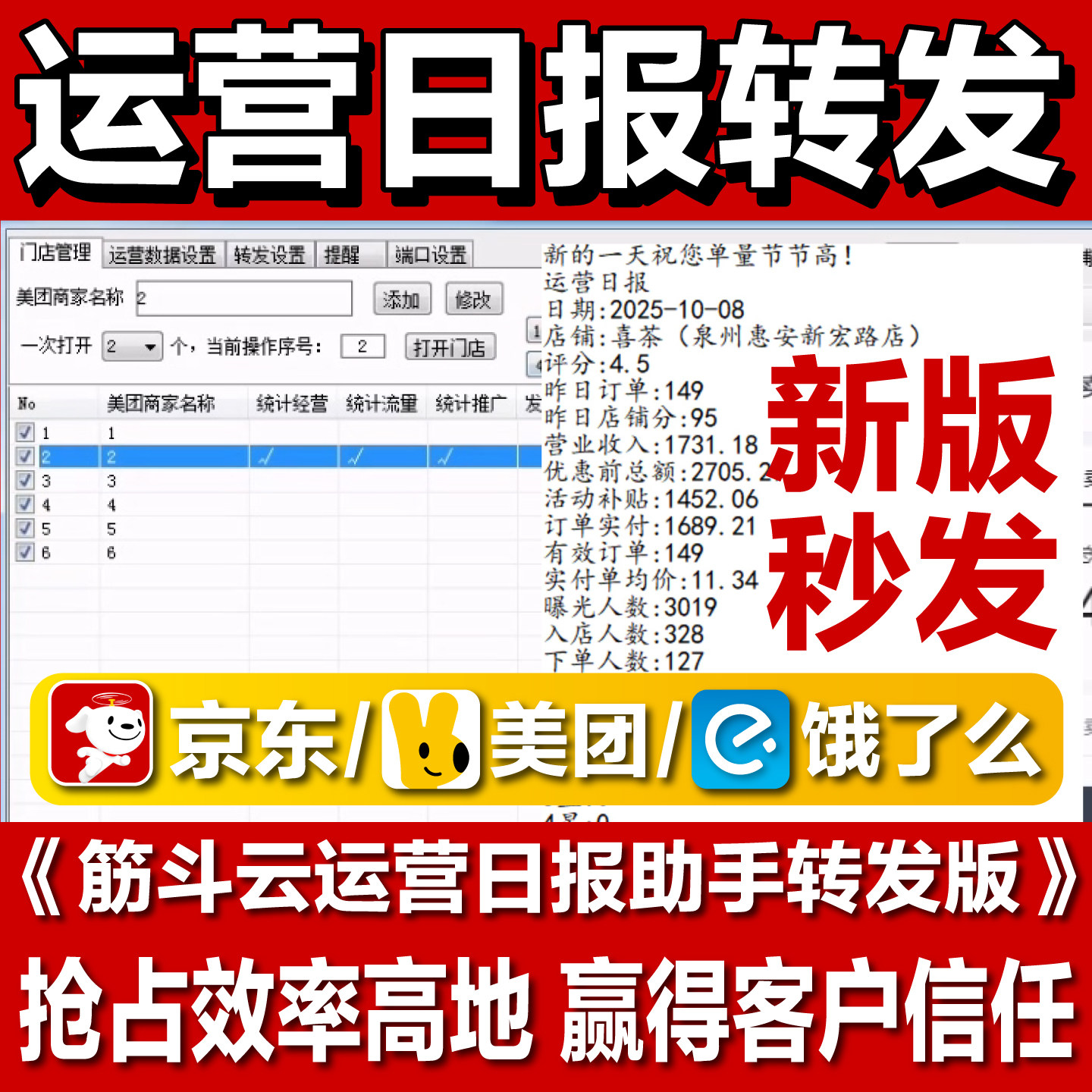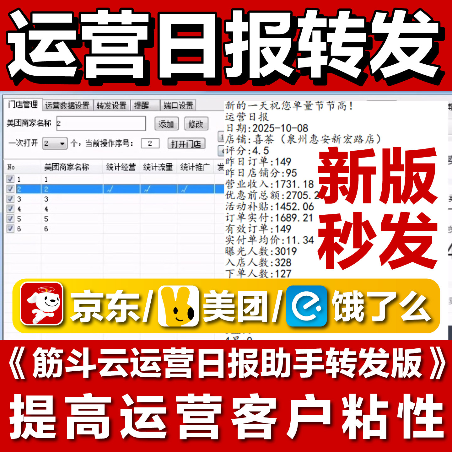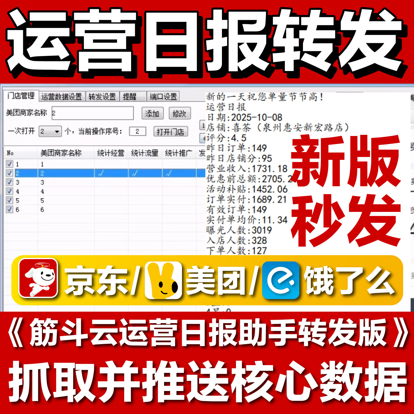 📚 筋斗云美团饿了么京东运营日报助手转发运营数据到群外卖日报软件