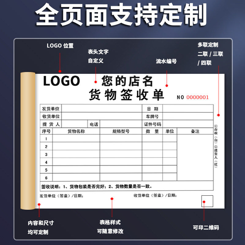 📚 2本货物签收单二三联通用现货单据定制物流待收货单发货单凭证交接单客户签回单回执单无碳复写收据定做