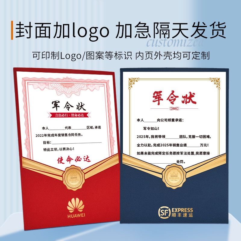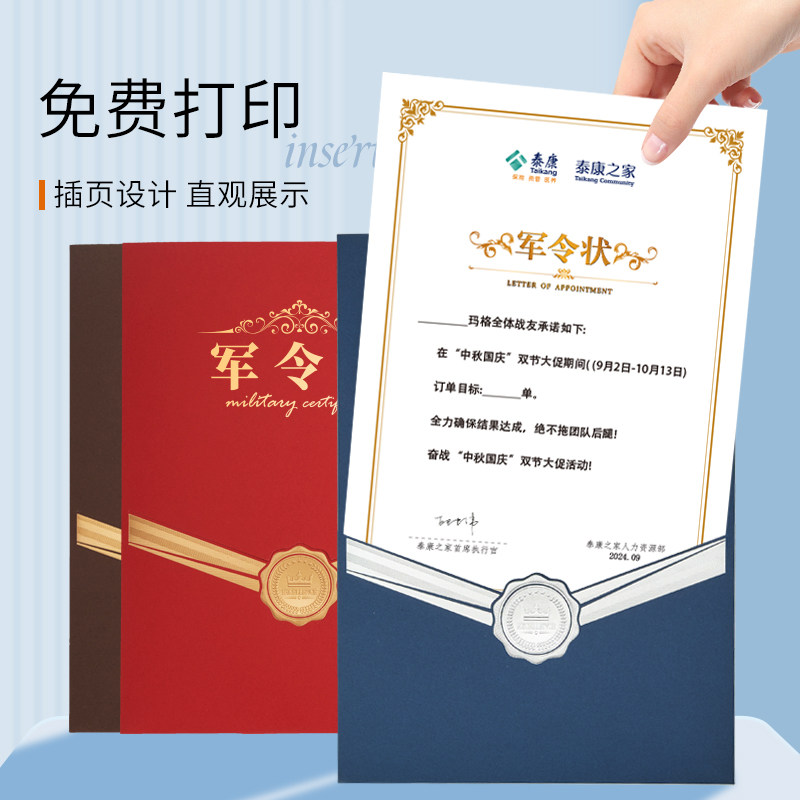 📚 军令状责任书封皮军令状外壳证书业绩责任状卡纸定制A4打印任务