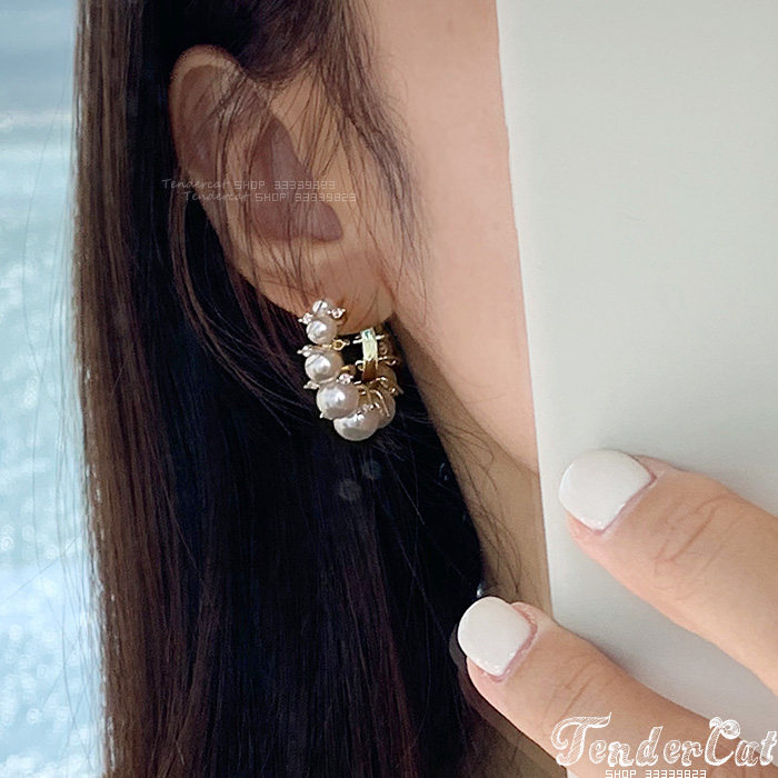 📚 Pearl Ring Earrings 小香风渐变大小珍珠装饰插扣圆环耳环