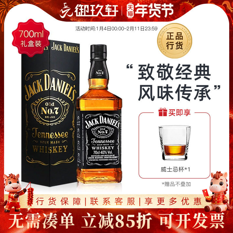 📚 杰克丹尼威士忌酒700ml波本可乐桶鸡尾酒JackDaniels洋酒礼盒装