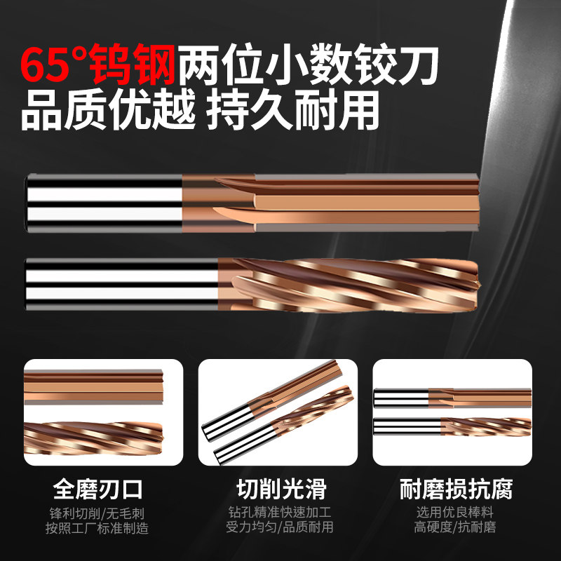 📚 65°两位小数钨钢绞刀高硬度硬质合金螺旋机用铰刀小数点两位