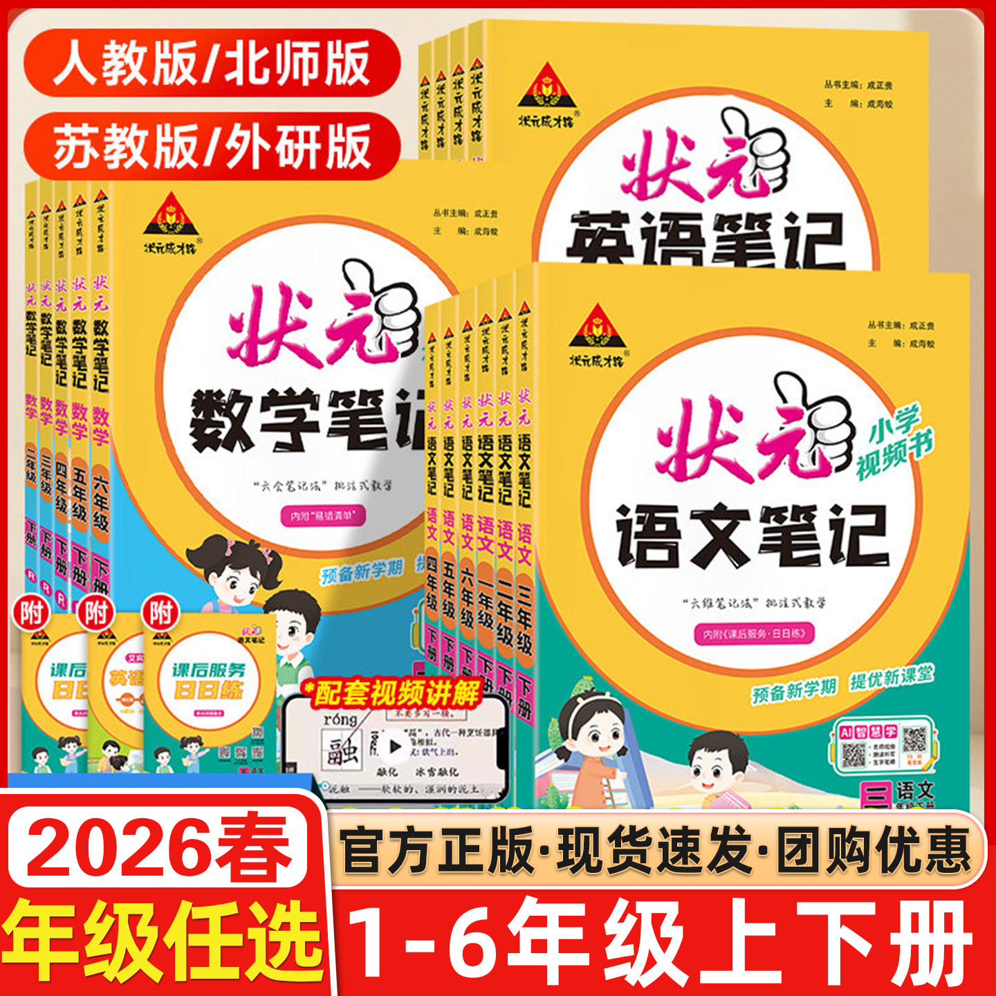 📚 2026春状元成才路状元语文数学笔记上下册人教统编素养版一1年级2二3四4三5五6六数学同步作文课本教材解读学霸笔记小学状元大课堂