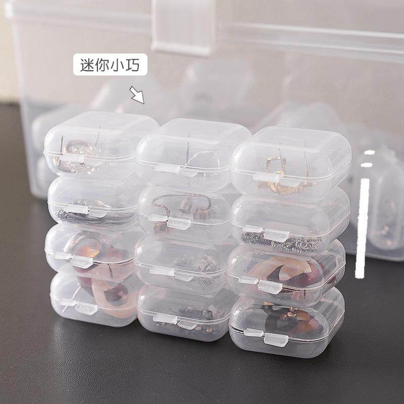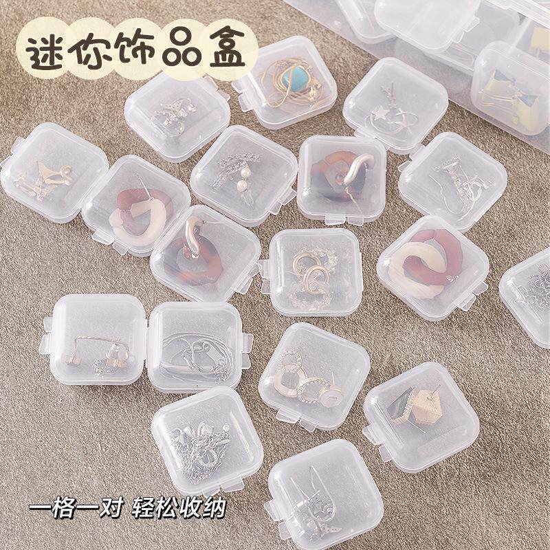📚 卡扣首饰盒透明塑料小药盒耳钉戒指小盒子零件卡片防尘收纳整理盒