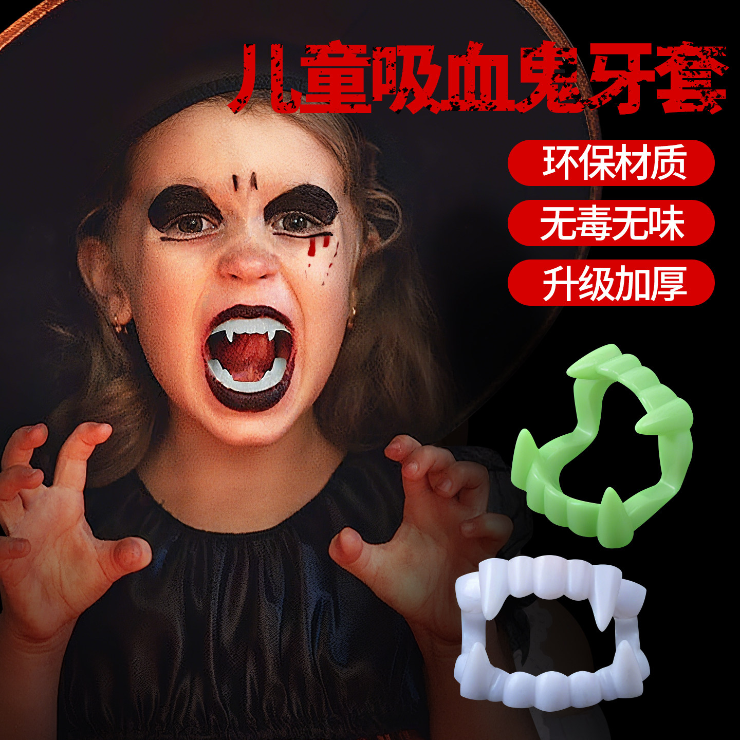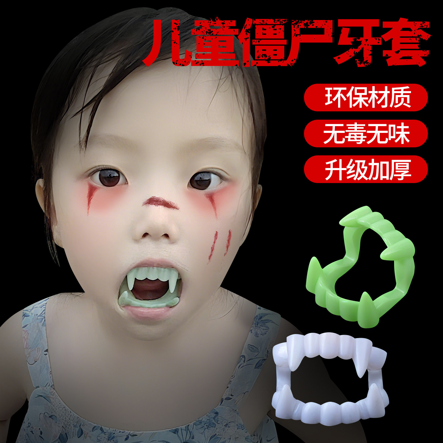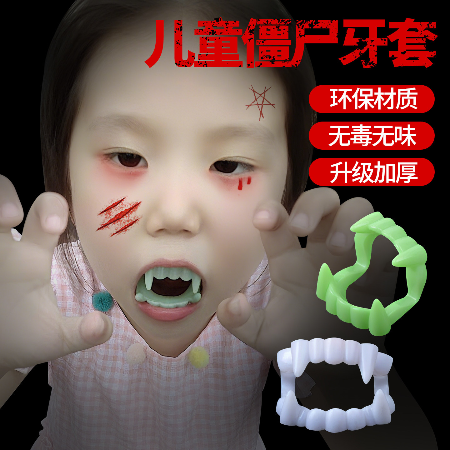 📚 吸血鬼牙套僵尸牙齿儿童假牙万圣节道具cos恶魔恐怖吓人妆容化妆
