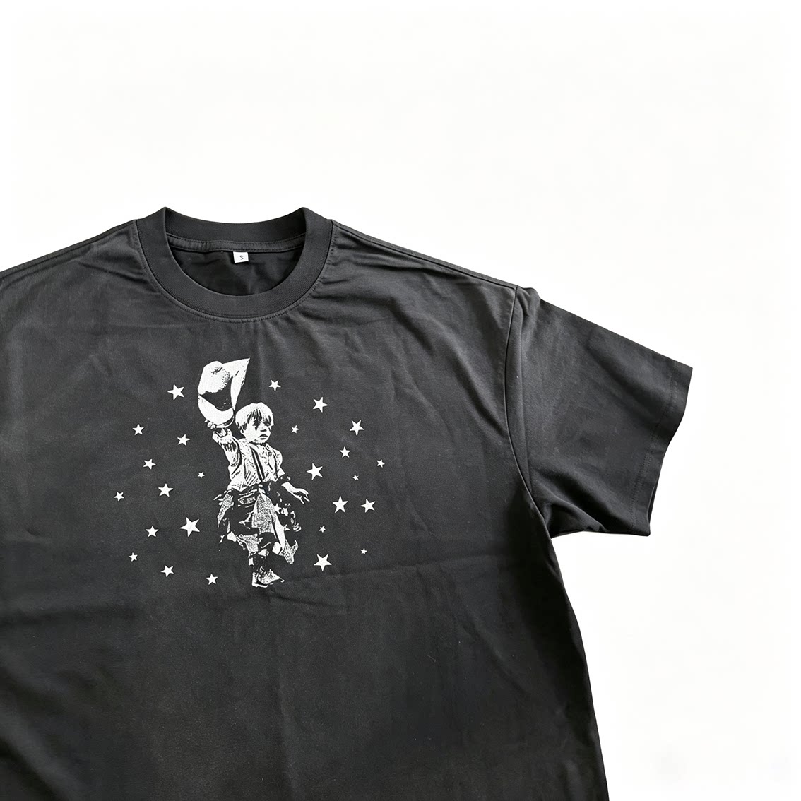 📚 Basic annals复古做旧印花短袖T恤男女摇滚风宽松上衣boxyfit短宽