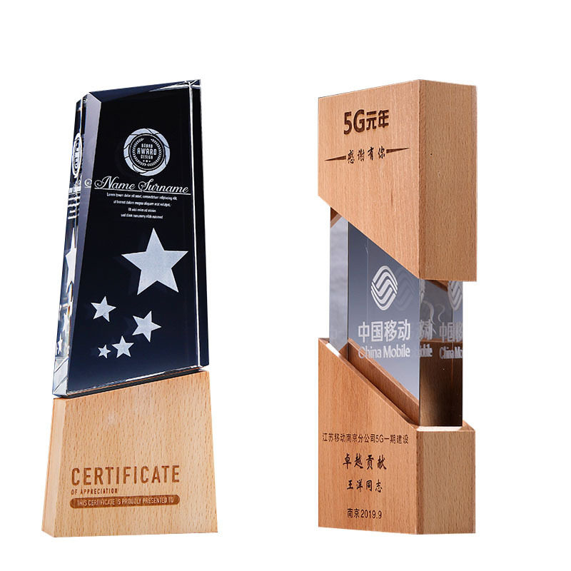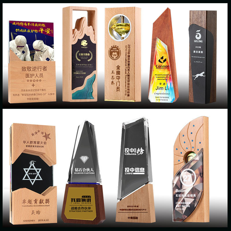 📚 新品木质水晶奖杯奖牌定制抗疫情护实木奖杯慈善奖杯志愿者纪念