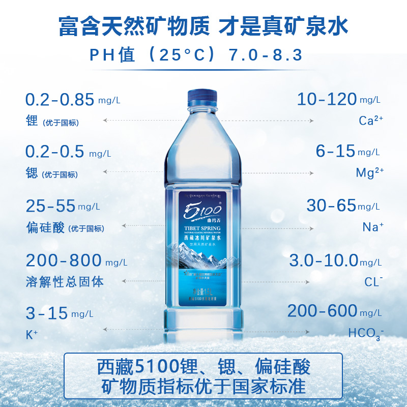 📚 【京东送货上门】5100西藏天然冰川矿泉水1.5L*12瓶 大瓶弱碱整箱