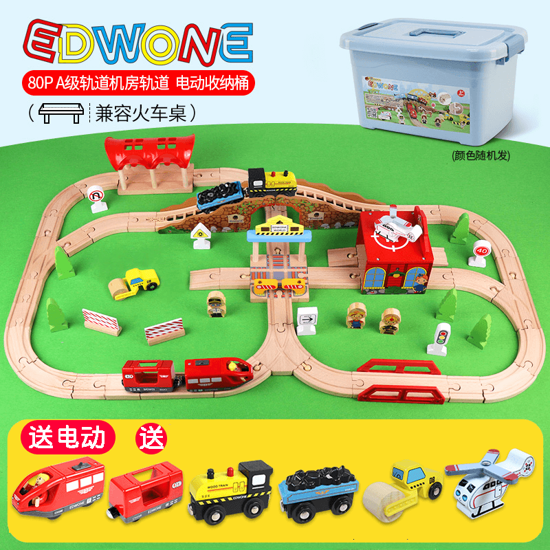 📚 EDWONE火车轨道玩具木制电动铁路百变木质轨道车玩具益智拼装积木