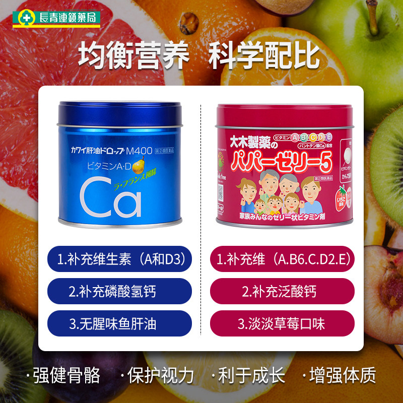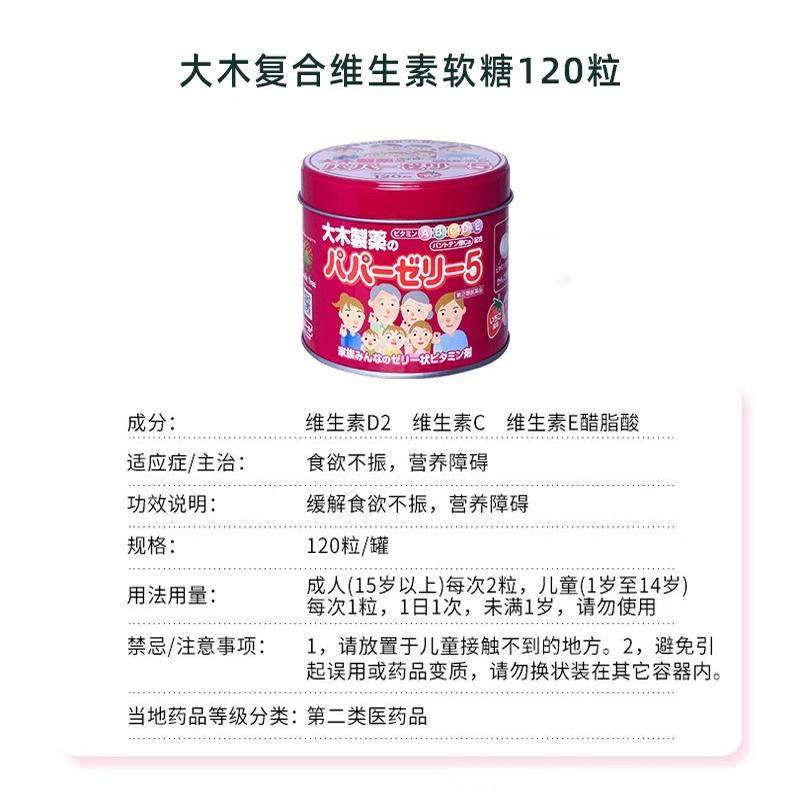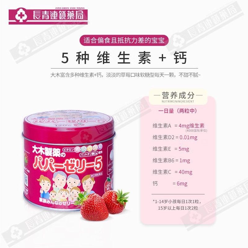 📚 日本大木儿童维生素复合软糖草莓味120粒kawai梨之钙卡哇伊肝油丸