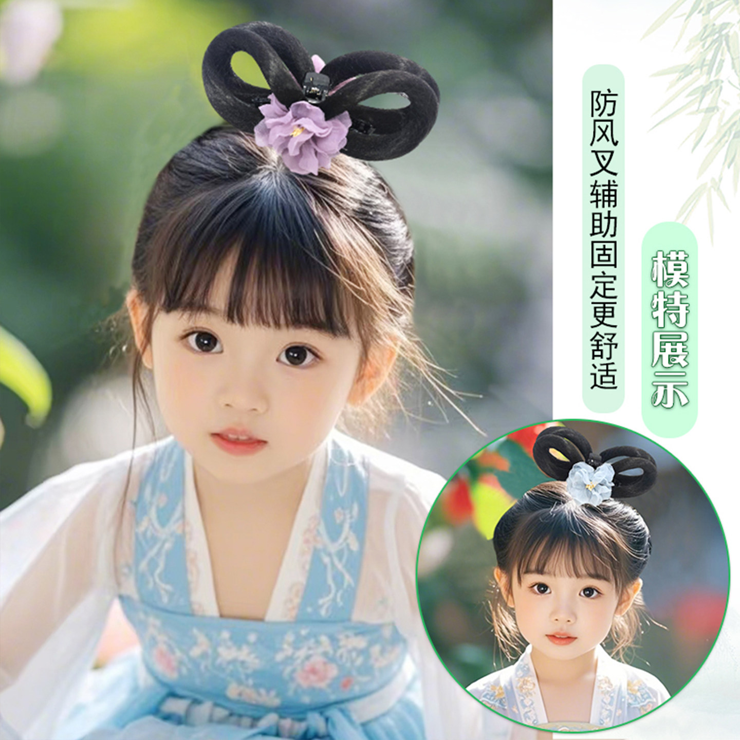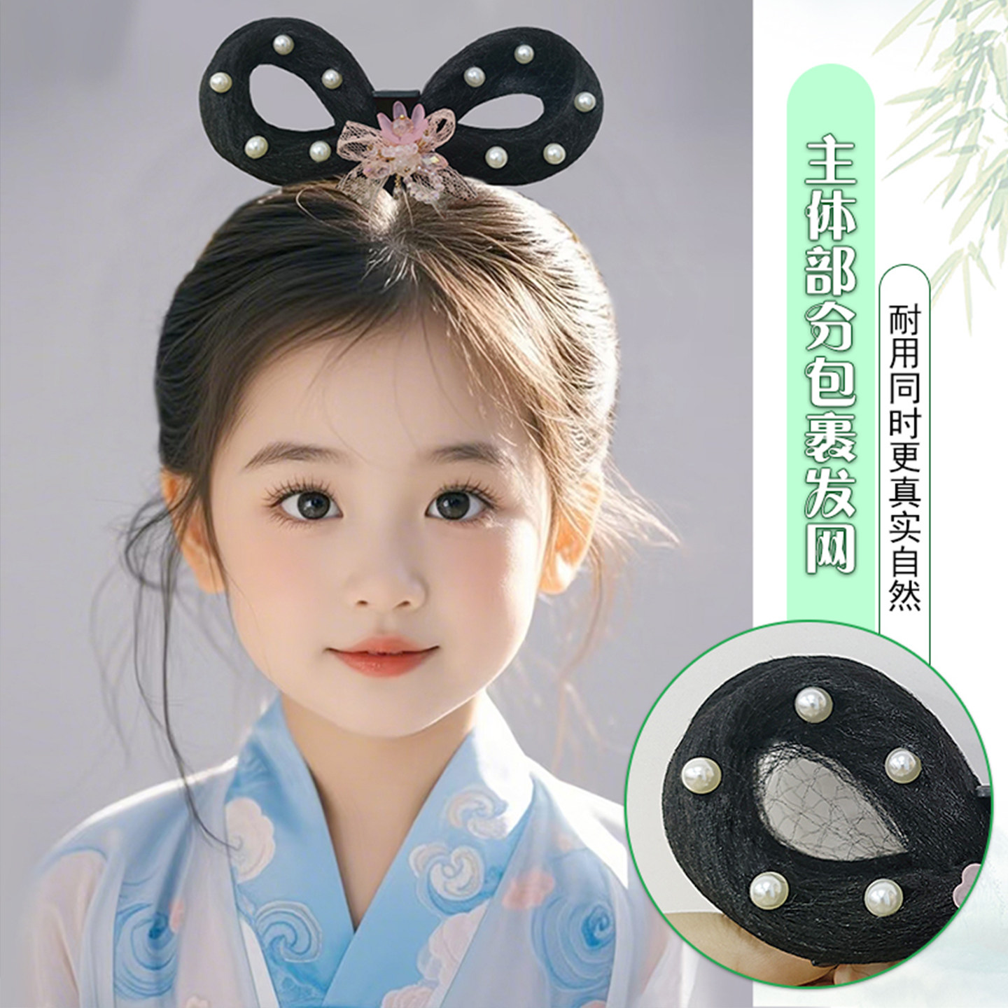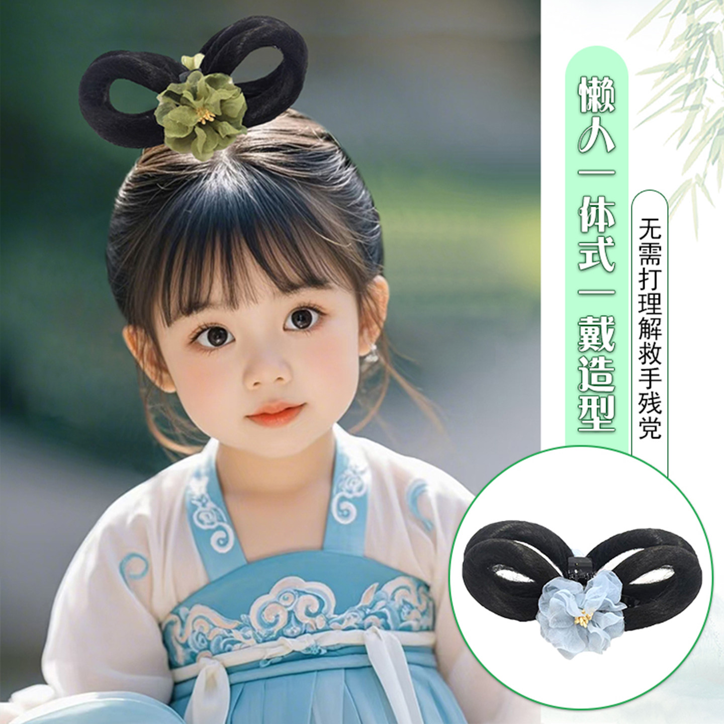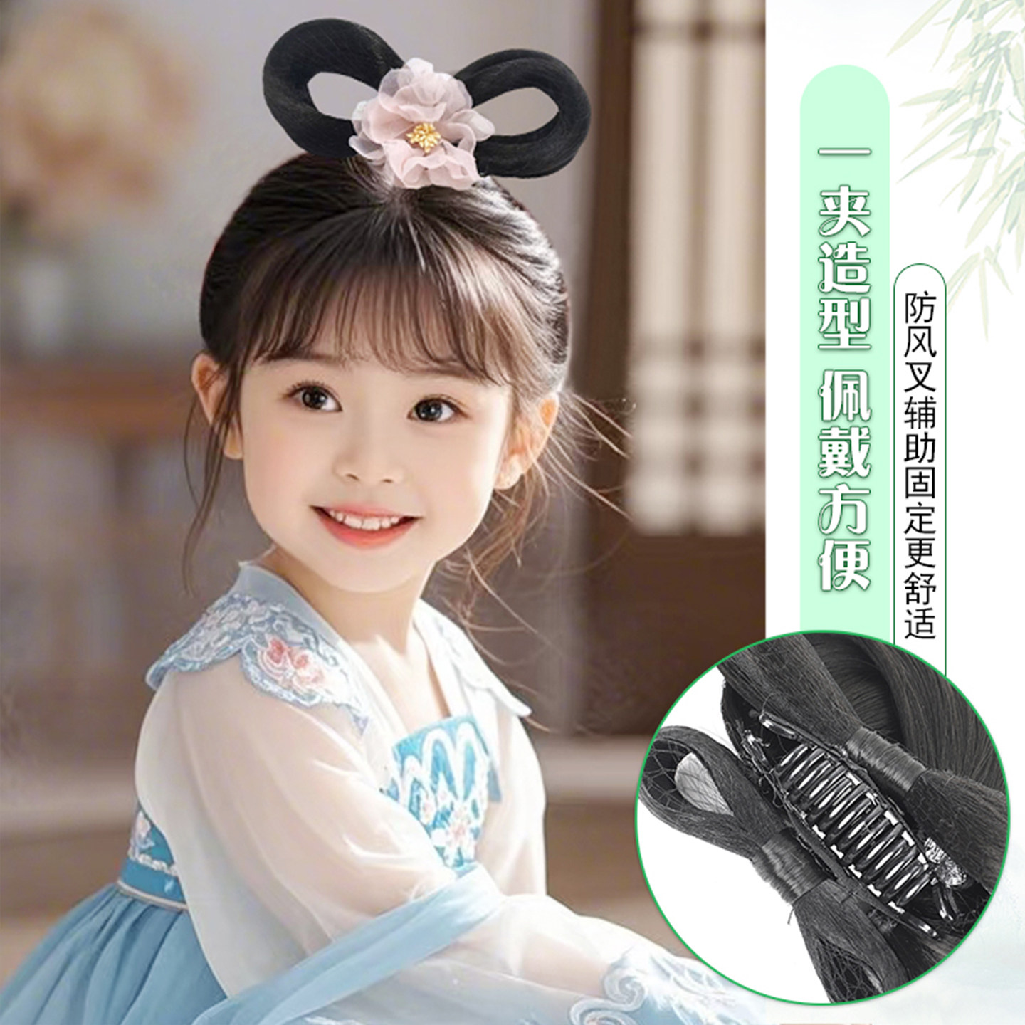 📚 儿童汉服假发抓夹假发包一体式懒人发髻明制可爱女童舞台演出造型