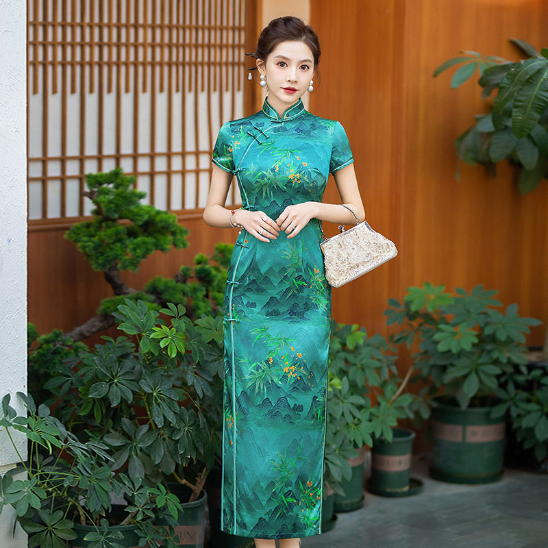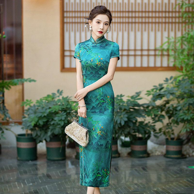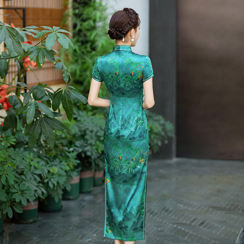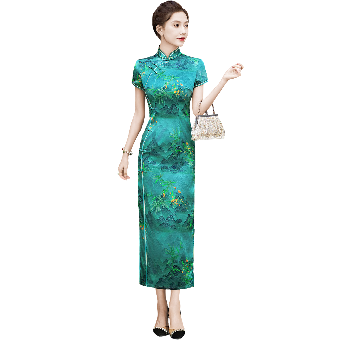 📚 重磅真丝桑蚕丝旗袍长款短袖走秀演出妈妈装新中式老上海民国海派