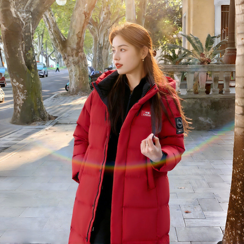📚 鸭鸭羽绒服女款冬季红色本命年加厚女装长款过膝连帽防寒保暖外套
