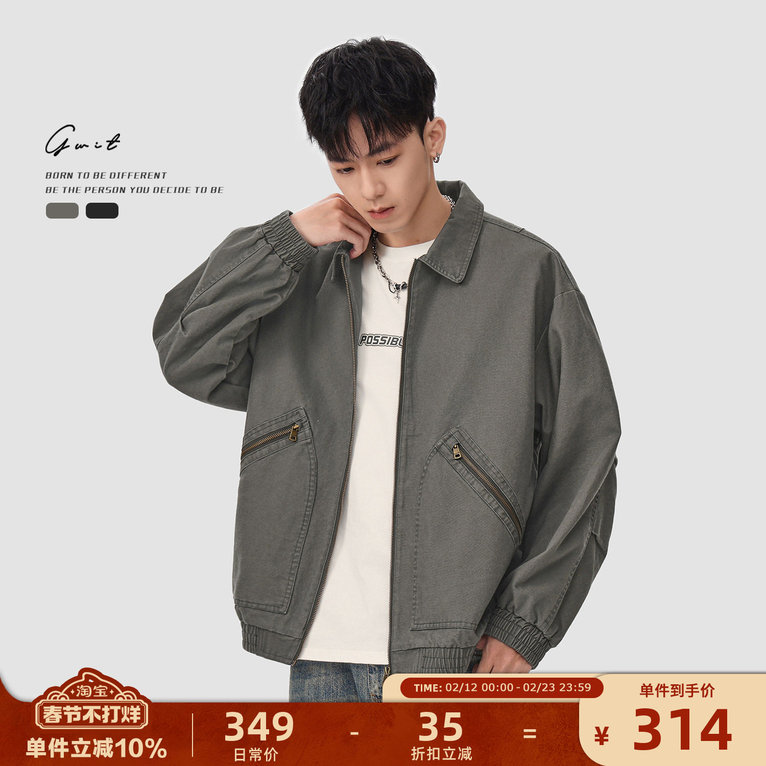 📚 GWIT 美版Vintage经典款翻领夹克男工装外套短款古着上衣重工水洗