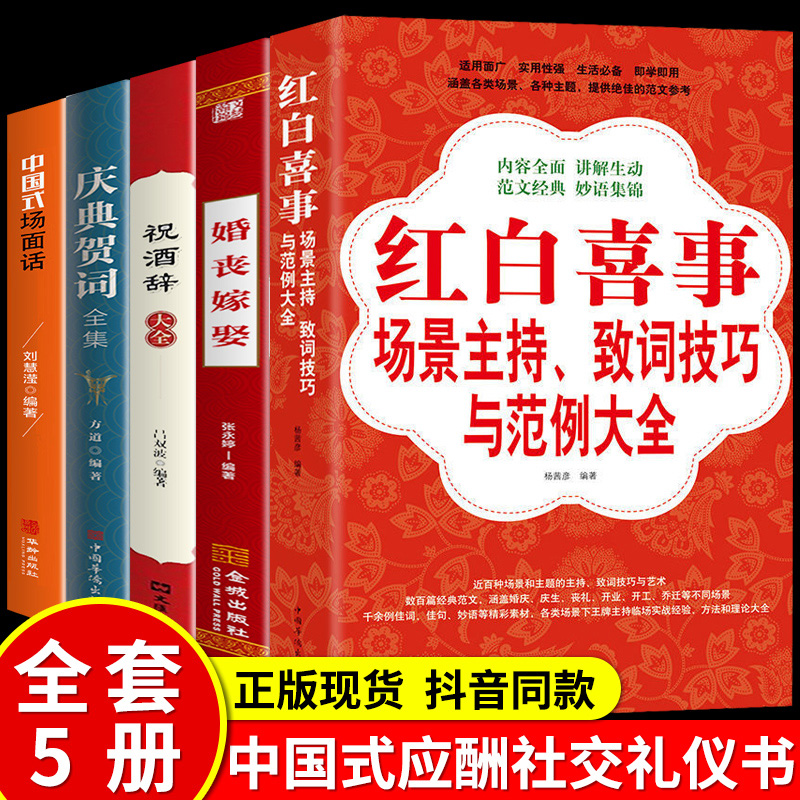 📚 全套5册 红白喜事场景主持婚丧嫁娶祝酒词中国式场面话庆典贺词全集致词技巧与范例四言八句适用面广实用生活工具书礼仪常识全书