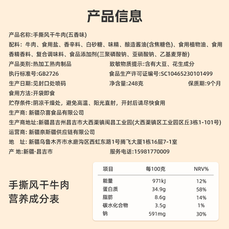 📚 北疆与你手撕牛肉干正宗新疆特产牛肉干248g袋独立包装休闲零食