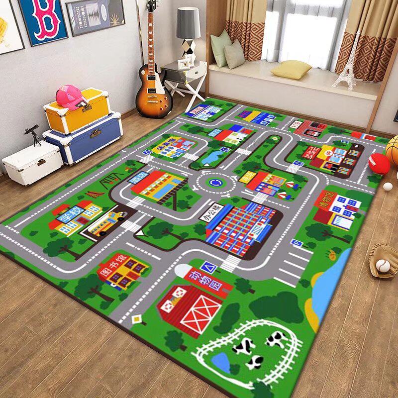 📚 儿童地毯爬爬垫城市交通车道停车场棋盘玩具地垫床边