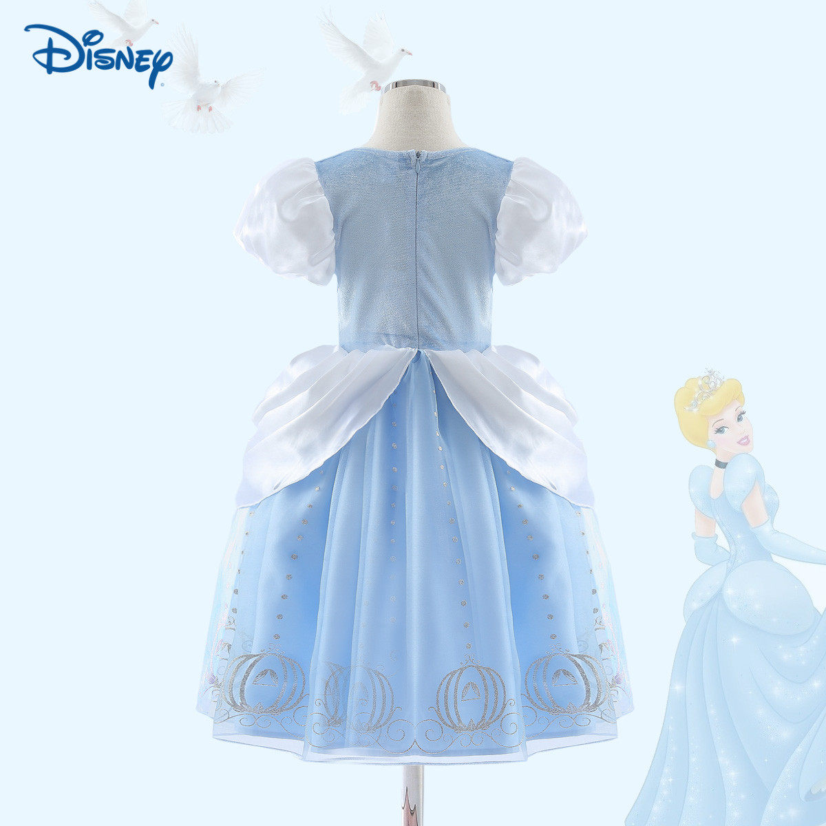 📚 新款迪士尼女童短袖仙蒂公主裙秋冬款演出服蓬蓬纱裙灰姑娘连衣裙