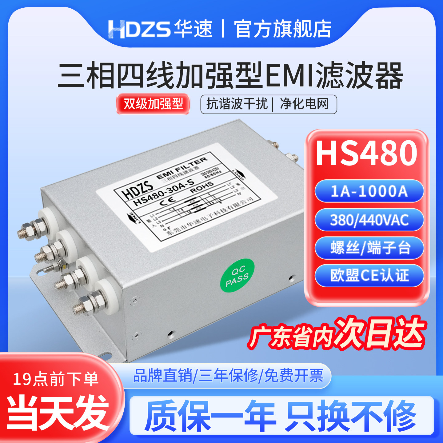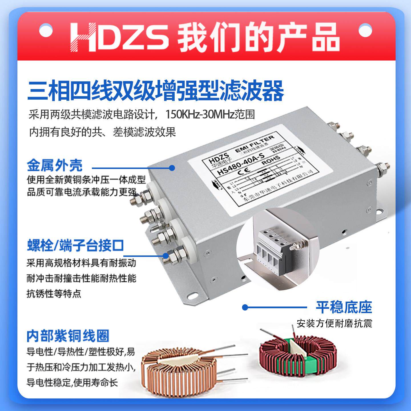 📚 华速HS480三相四线交流EMI电源滤波器380V440V抗干扰EMC电磁净化