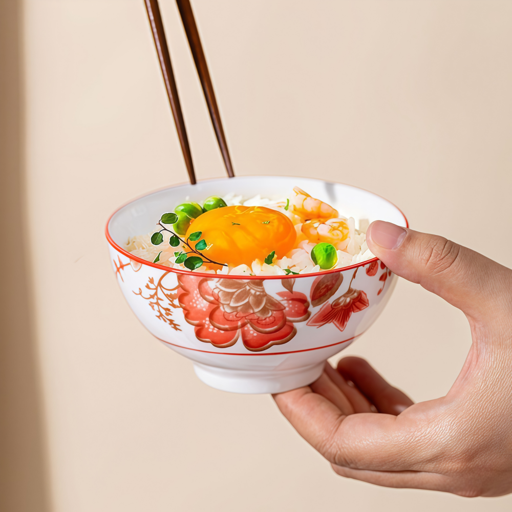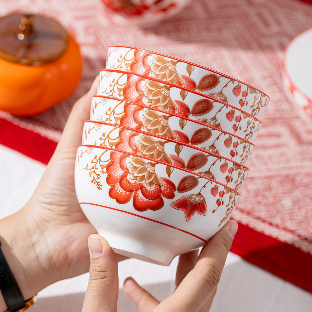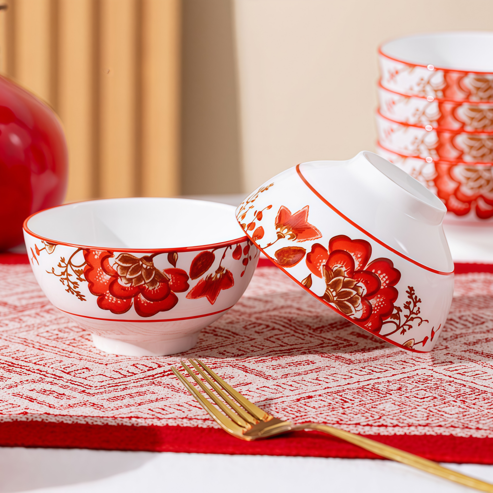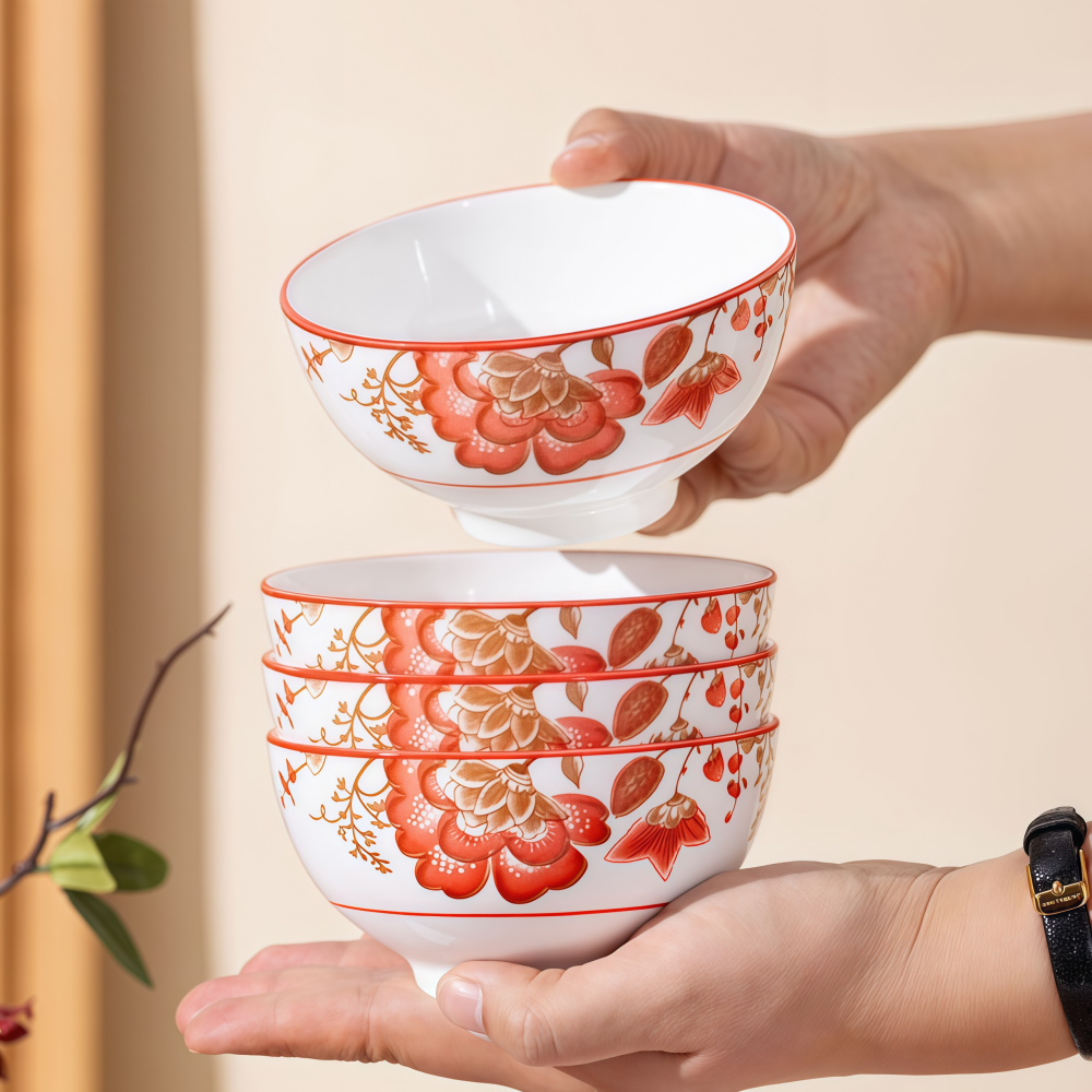 📚 10个装4.5英寸饭碗吃饭碗家用陶瓷米饭碗釉下彩高颜值过年款加厚