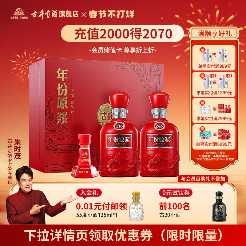 📚 【顺丰48小时】古井贡酒年份原浆古16-50度礼盒500ml*2浓香型白酒