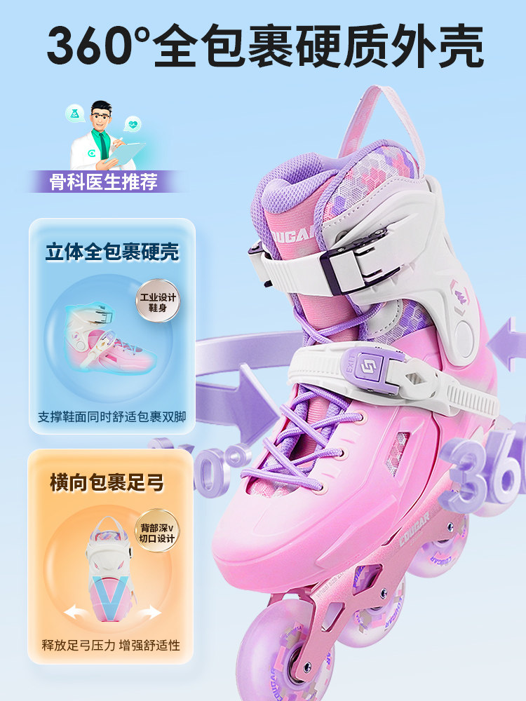 📚 美洲狮儿童轮滑鞋男女童溜冰鞋旱冰鞋报班培训尺寸可调高级款